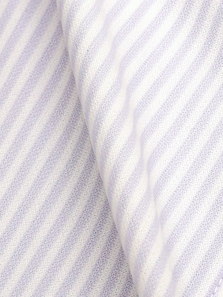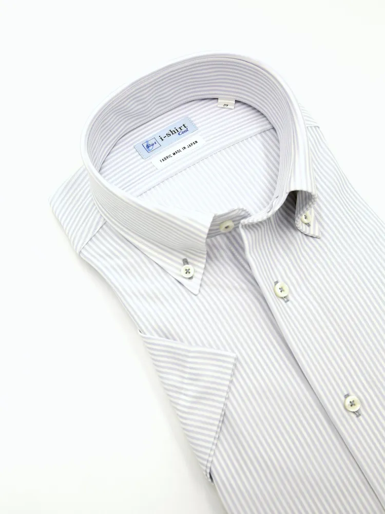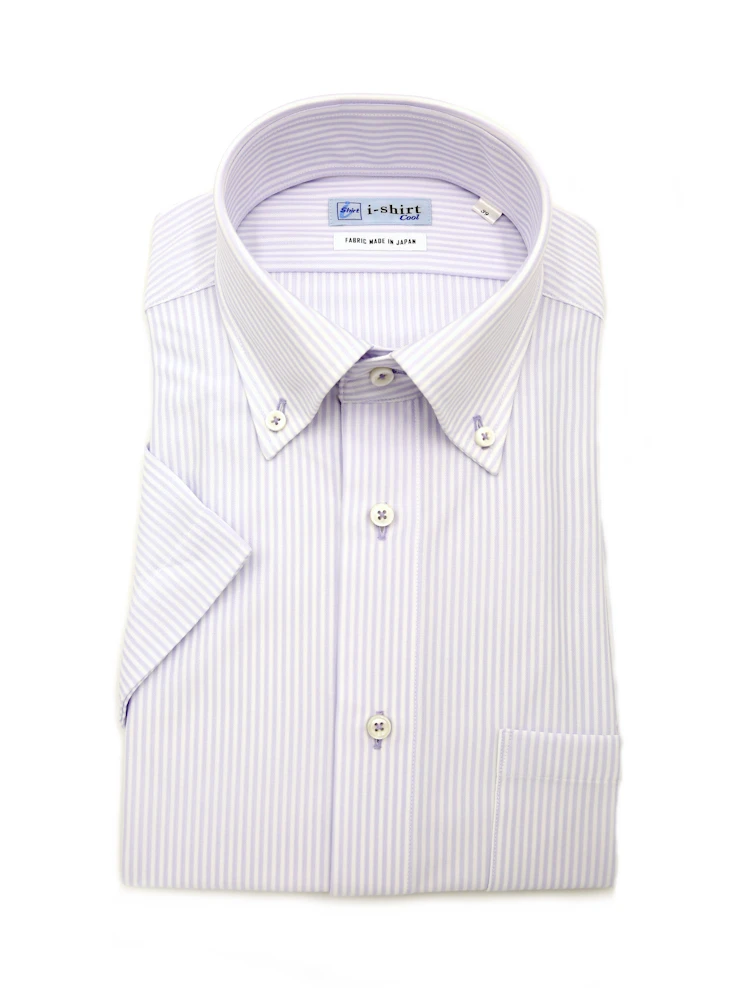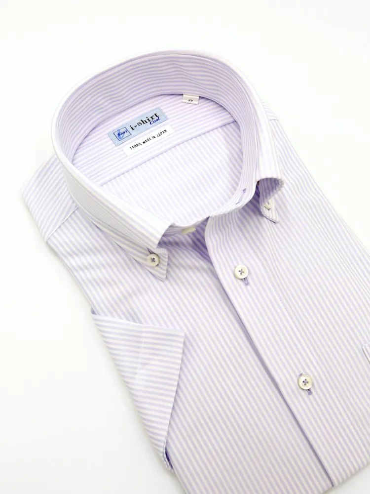 【完全ノーアイロン】半袖 アイシャツ ボタンダウン【バイオセンサークール生地使用】高通気 冷感 ストライプ ワイシャツ i-shirt 春夏(ラベンダー)