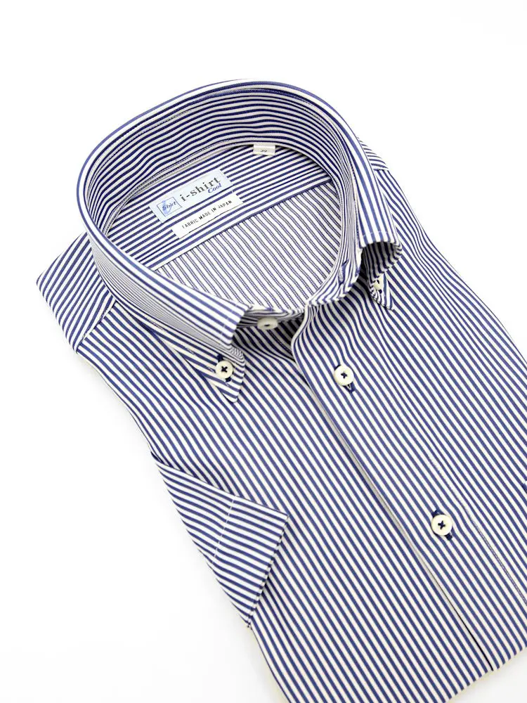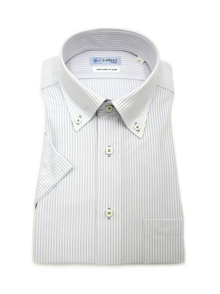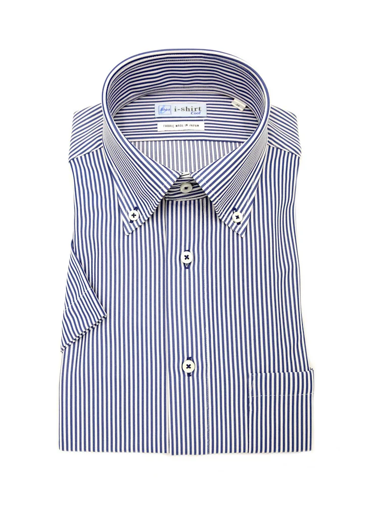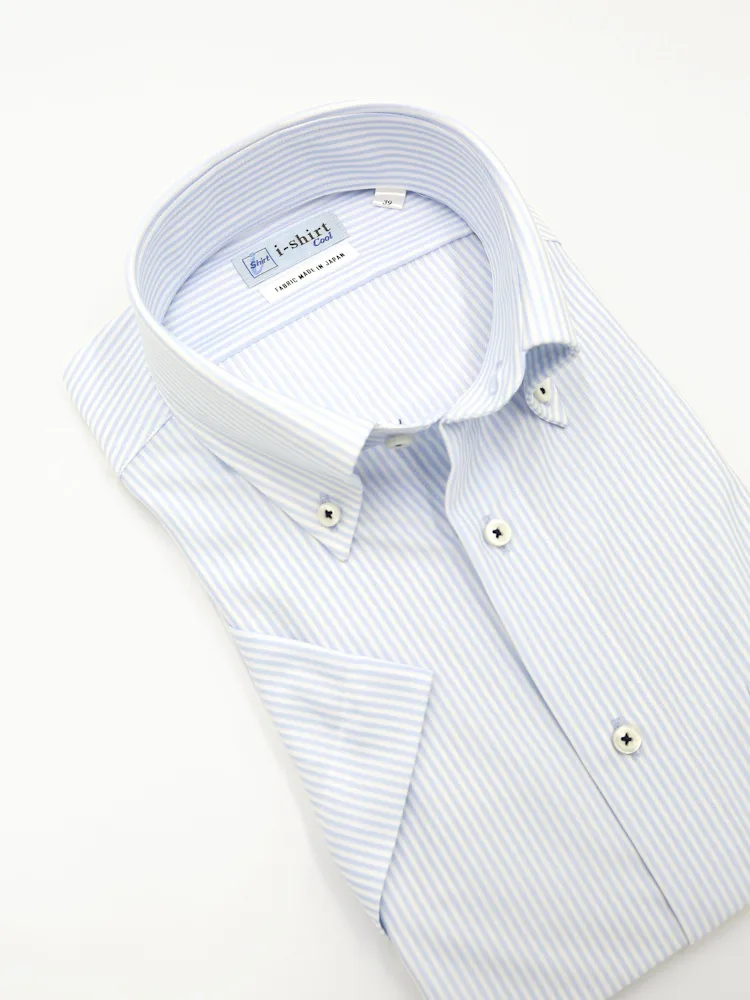 【完全ノーアイロン】半袖アイシャツボタンダウン【バイオセンサークール生地使用】高通気冷感ストライプワイシャツi-shirt春夏