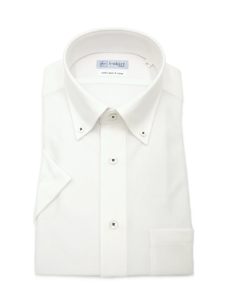 【完全ノーアイロン】半袖アイシャツボタンダウン【バイオセンサークール生地使用】高通気冷感ツイル織柄無地ワイシャツi-shirt春夏