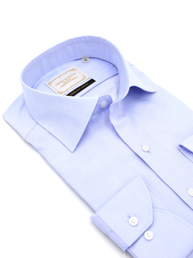 【綿100%】ハイクオリティシャツ 長袖 ワイシャツ セミワイド サックス 無地 STOVEL&MASON 通年
