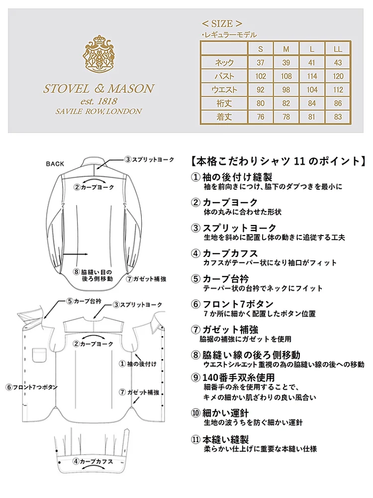 【綿100%】長袖ワイシャツワイドカラー織柄無地STOVEL&MASON通年