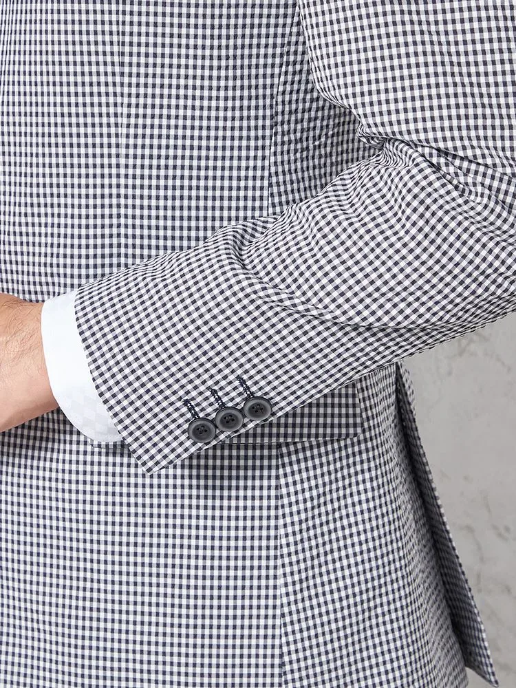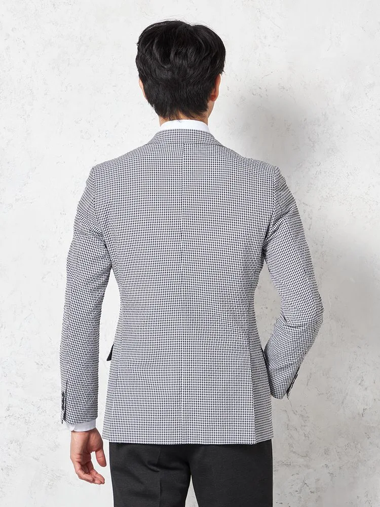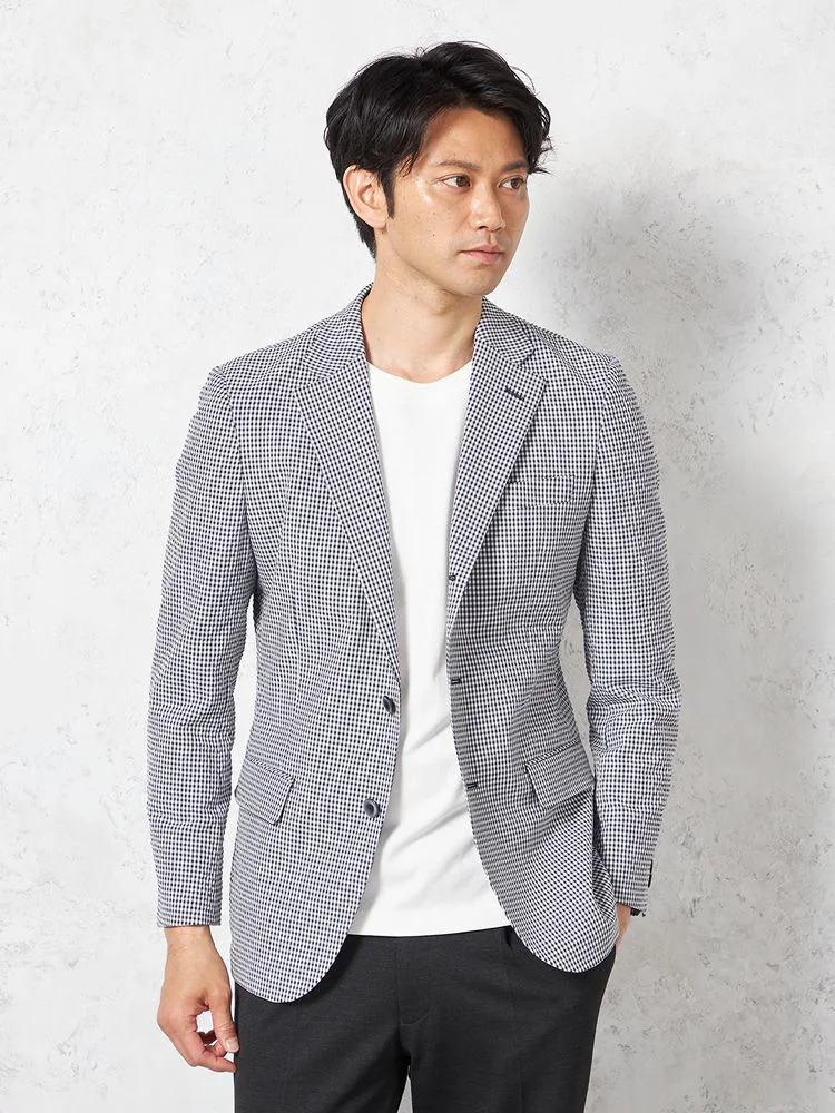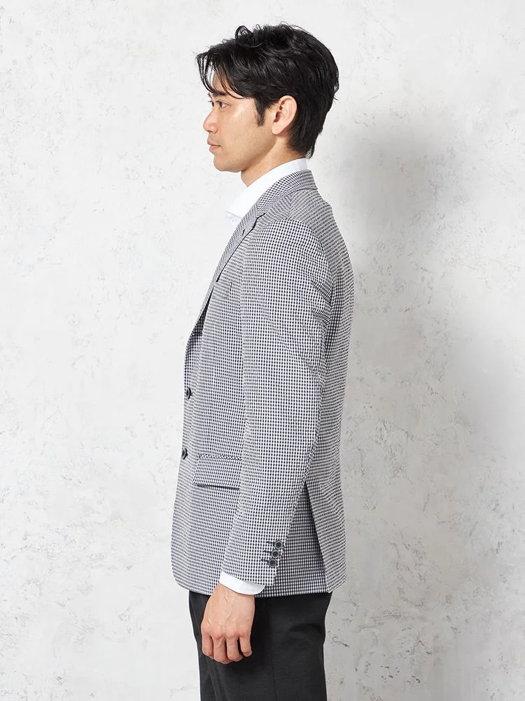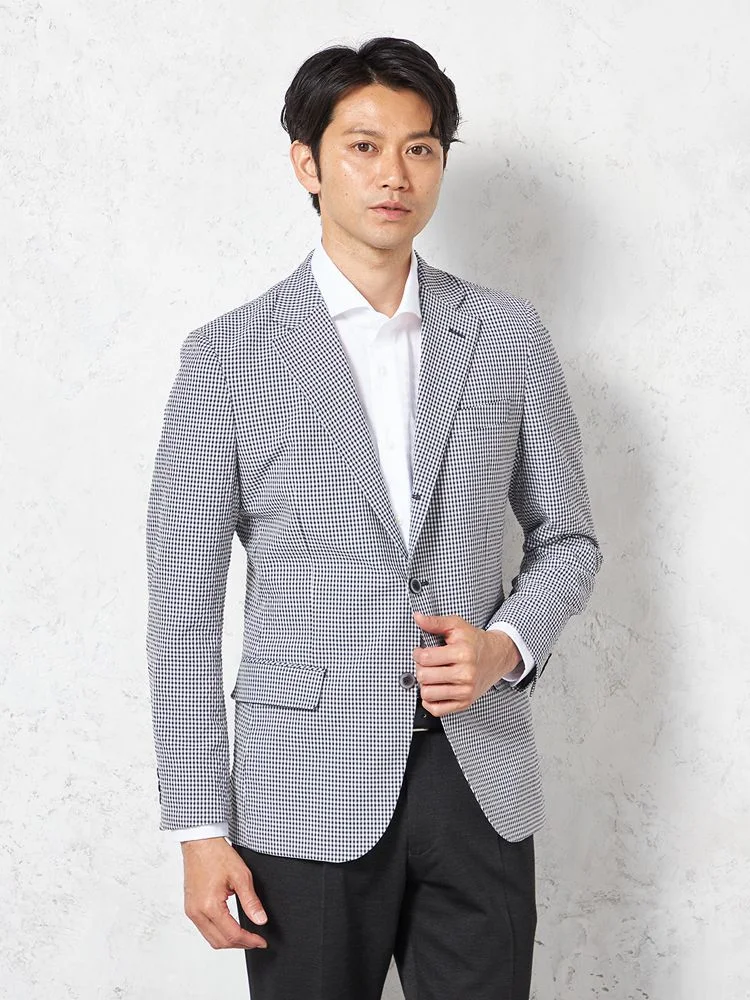 • 【ウォッシャブル】ジャケット 段返り3つボタン ストレッチサッカー素材 軽量 マイクロチェック 春夏 1278771268