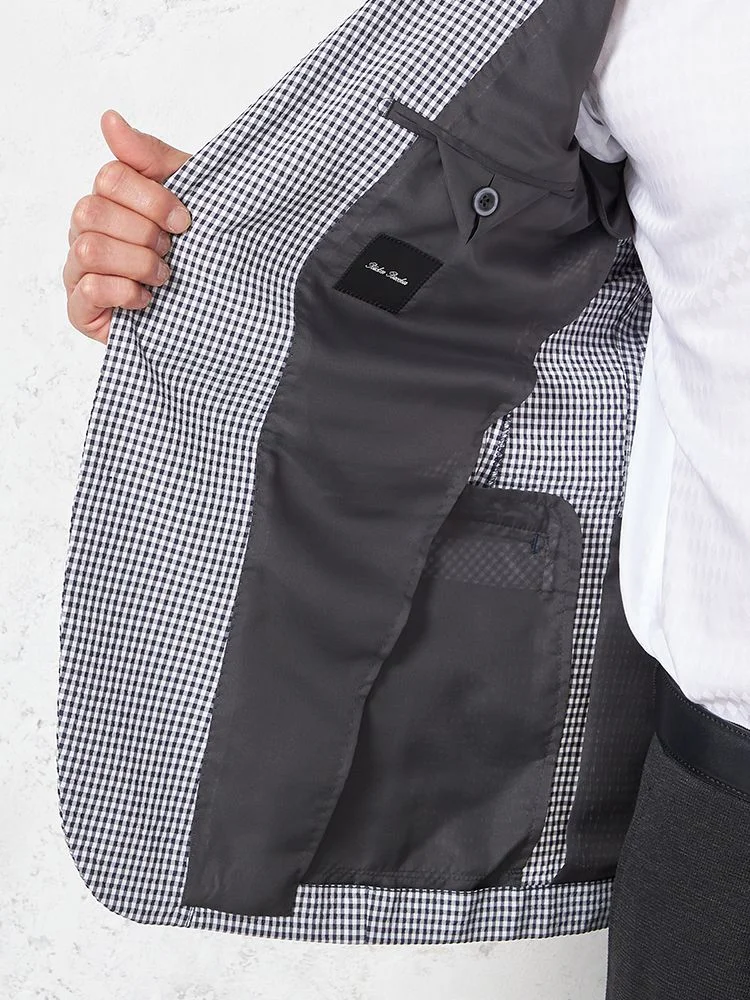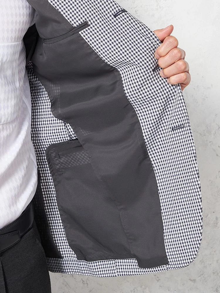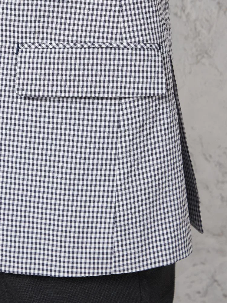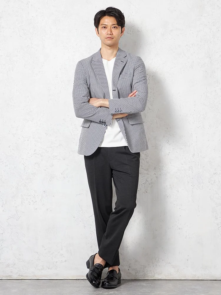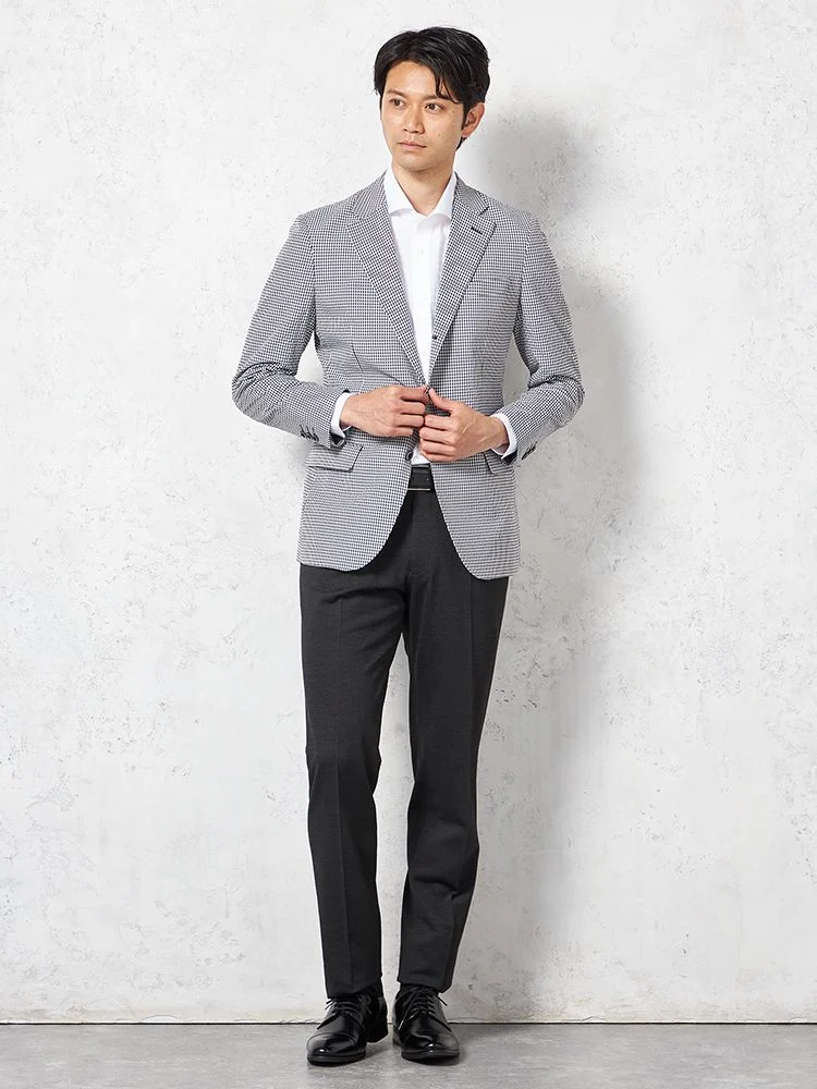• 【ウォッシャブル】ジャケット 段返り3つボタン ストレッチサッカー素材 軽量 マイクロチェック 春夏 1278771268
