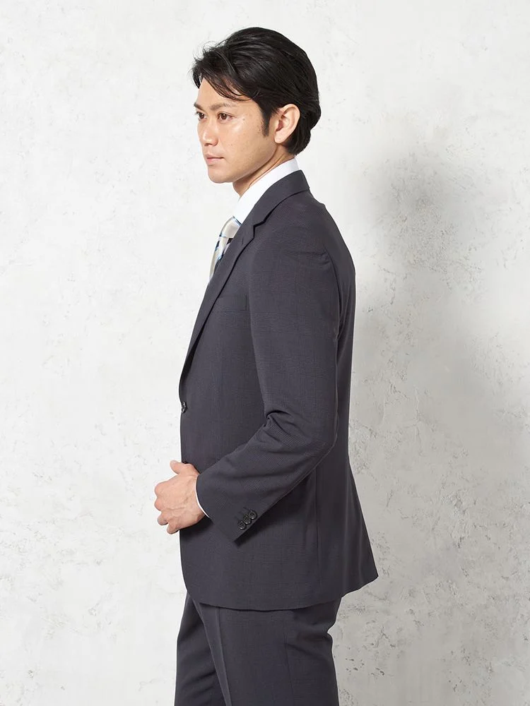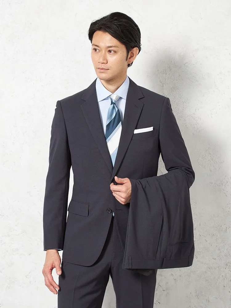 【上下ウォッシャブル】スーツ2つボタンツーパンツドライ素材清涼裏地小柄リッケンバッカー春夏