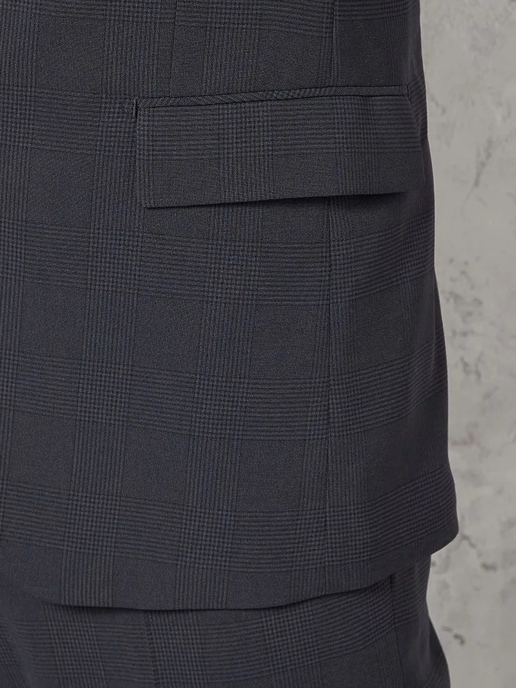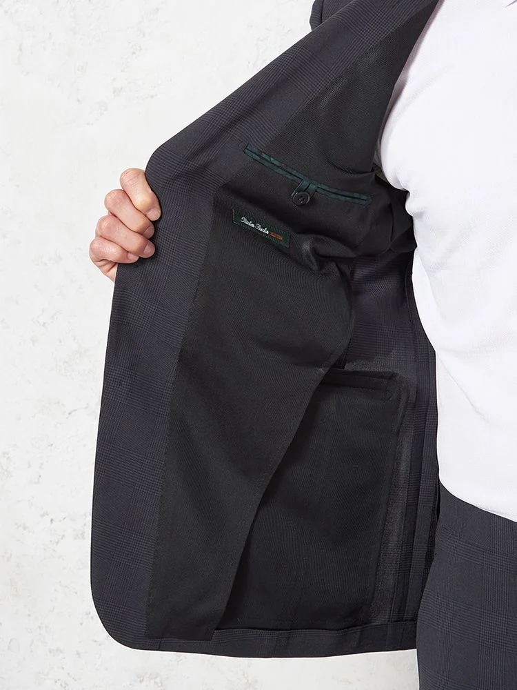 エレガントなグレンチェックの2つボタンスーツ。