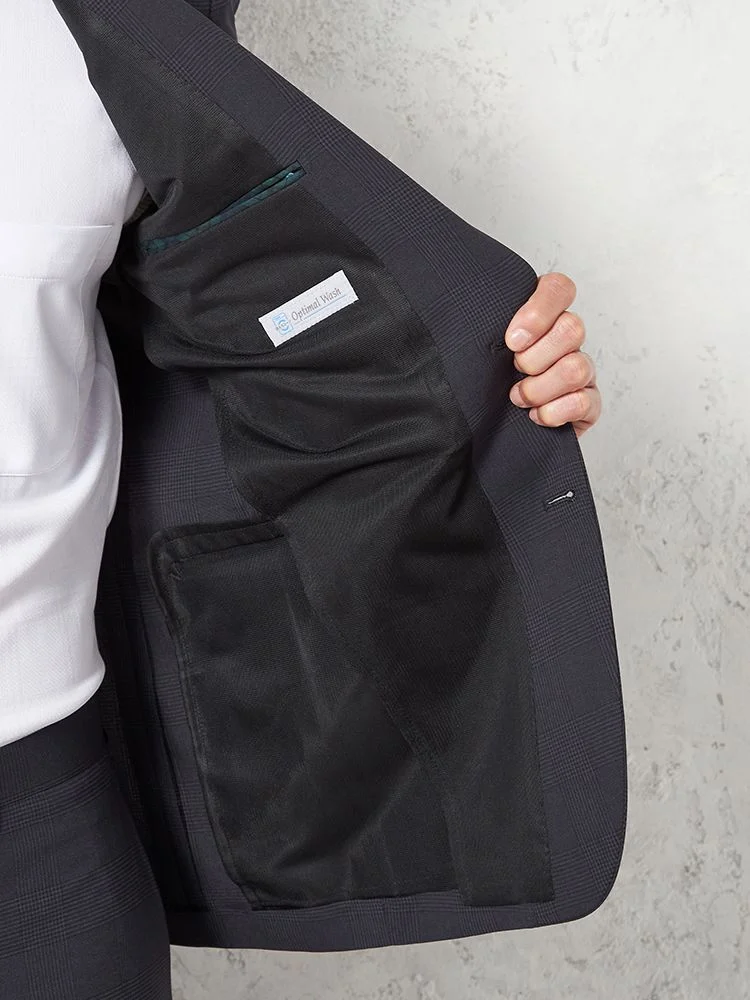 【上下ウォッシャブル】スーツ 2つボタン ツーパンツ ドライ素材 清涼裏地 グレンチェック リッケンバッカー 春夏