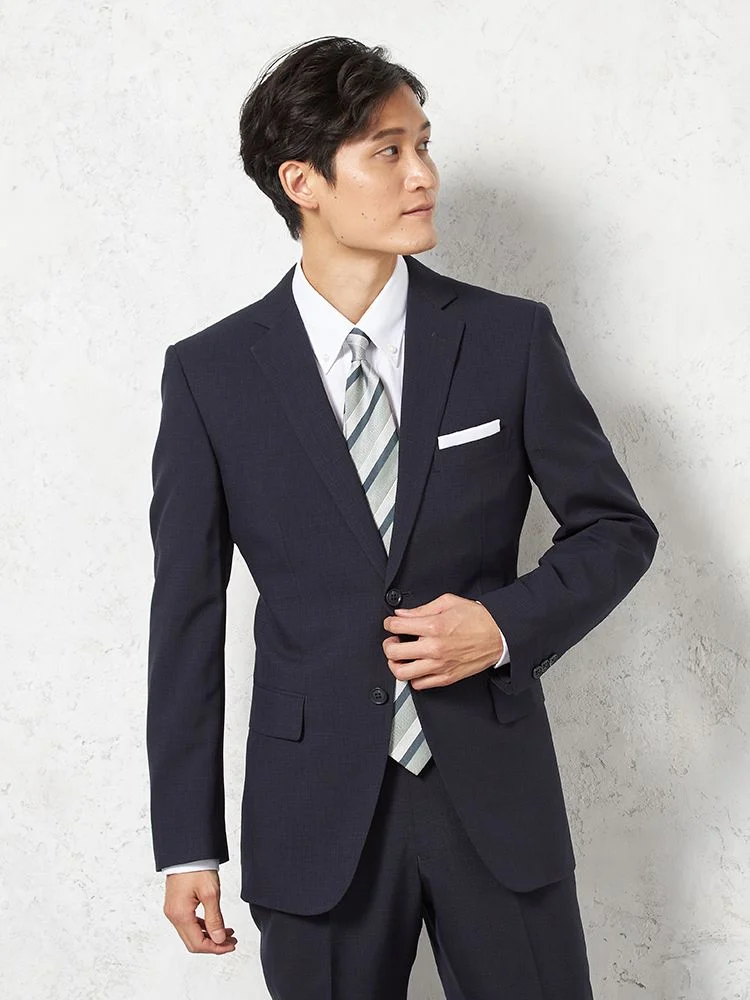 【上下ウォッシャブル】スリーピーススーツ2つボタン脚長スリムネイビーシャドウストライプNERO通年