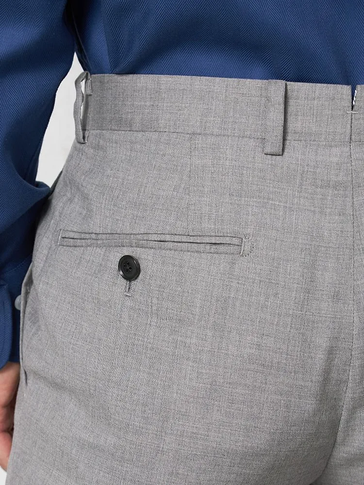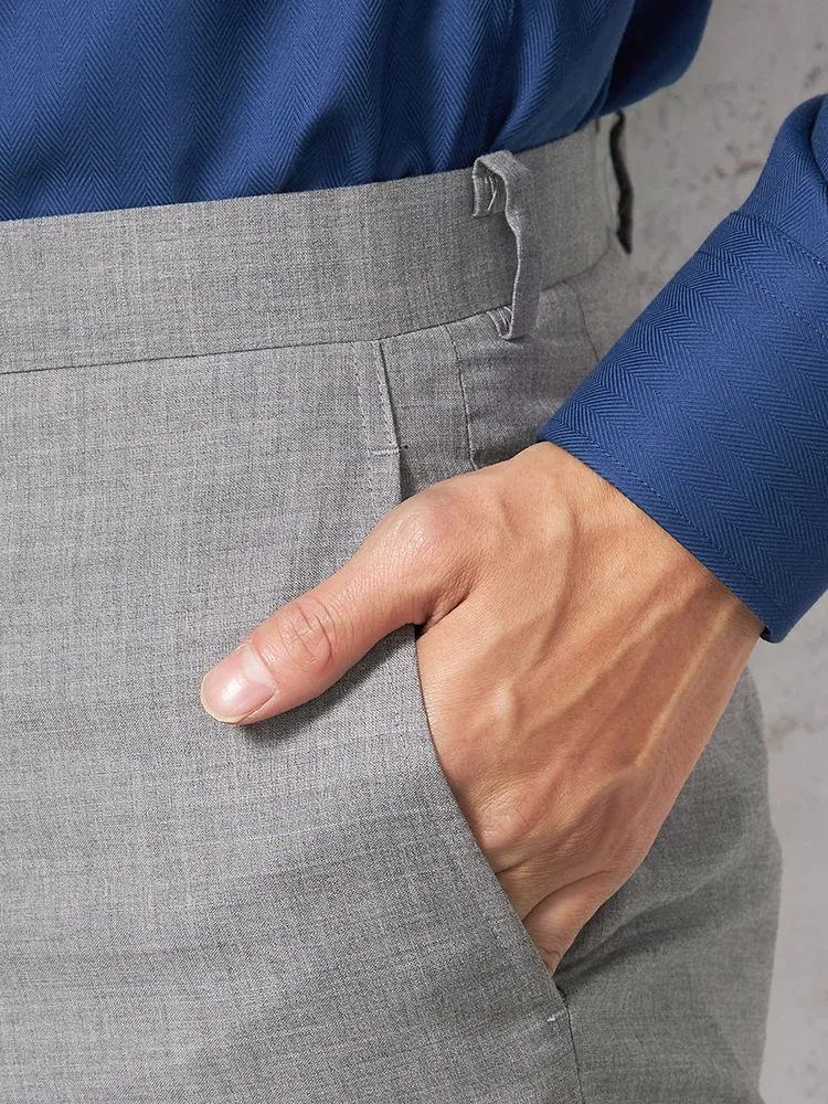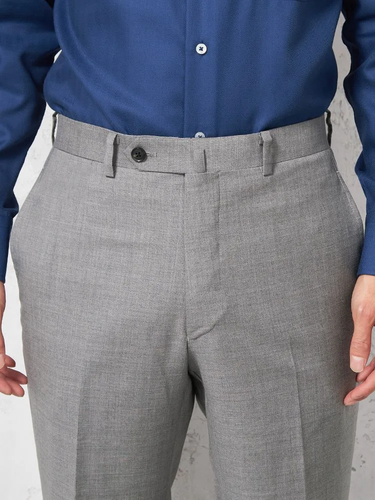 パンツの腰回りに生地の折り込みがなく、スッキリとしたシルエットを実現します。シンプルで洗練された印象を与え、すっきりとした着こなしが可能です。