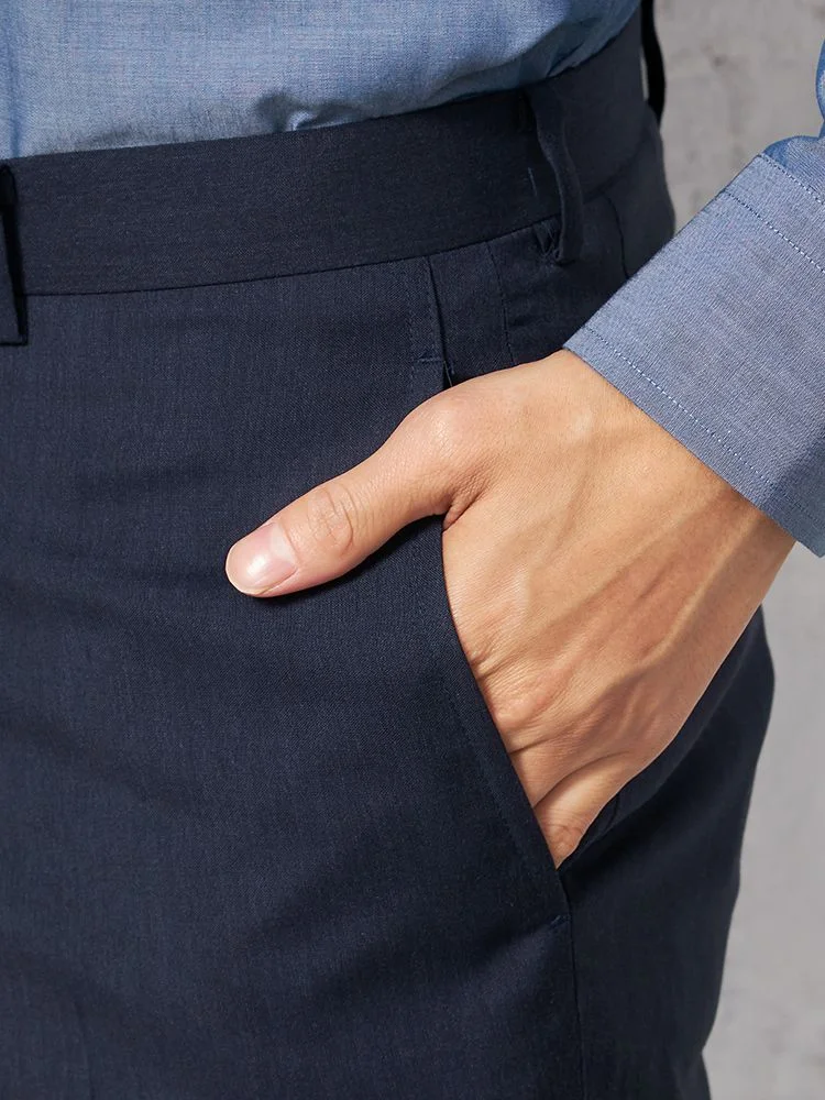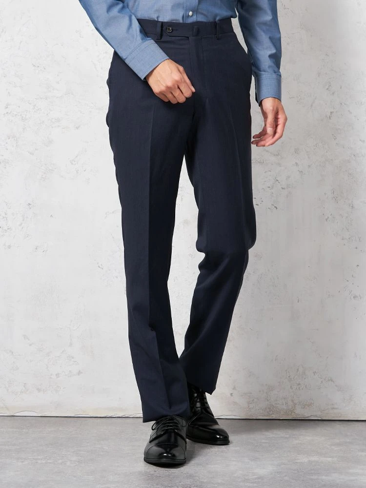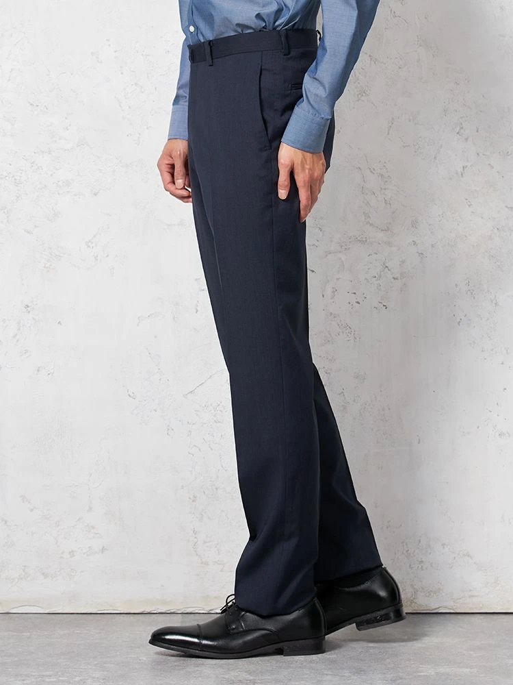 【イタリア製素材REDA FLEXO使用】パンツ スラックス ノータック 無地 S&M BLUE LABEL(ネイビー)