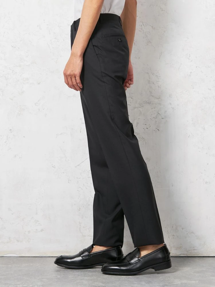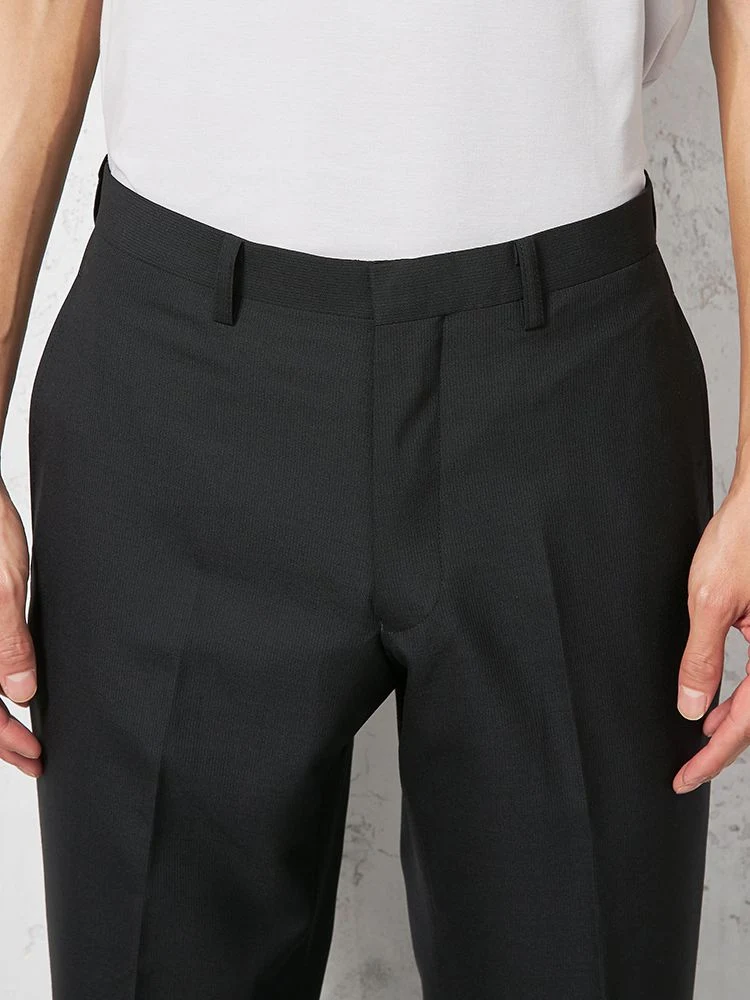 【ウォッシャブル】パンツスラックスノータックスリム織柄無地nero