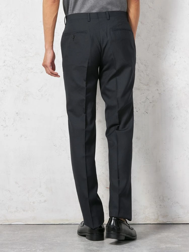 パンツの腰回りに生地の折り込みがなく、スッキリとしたシルエットを実現します。シンプルで洗練された印象を与え、すっきりとした着こなしが可能です。