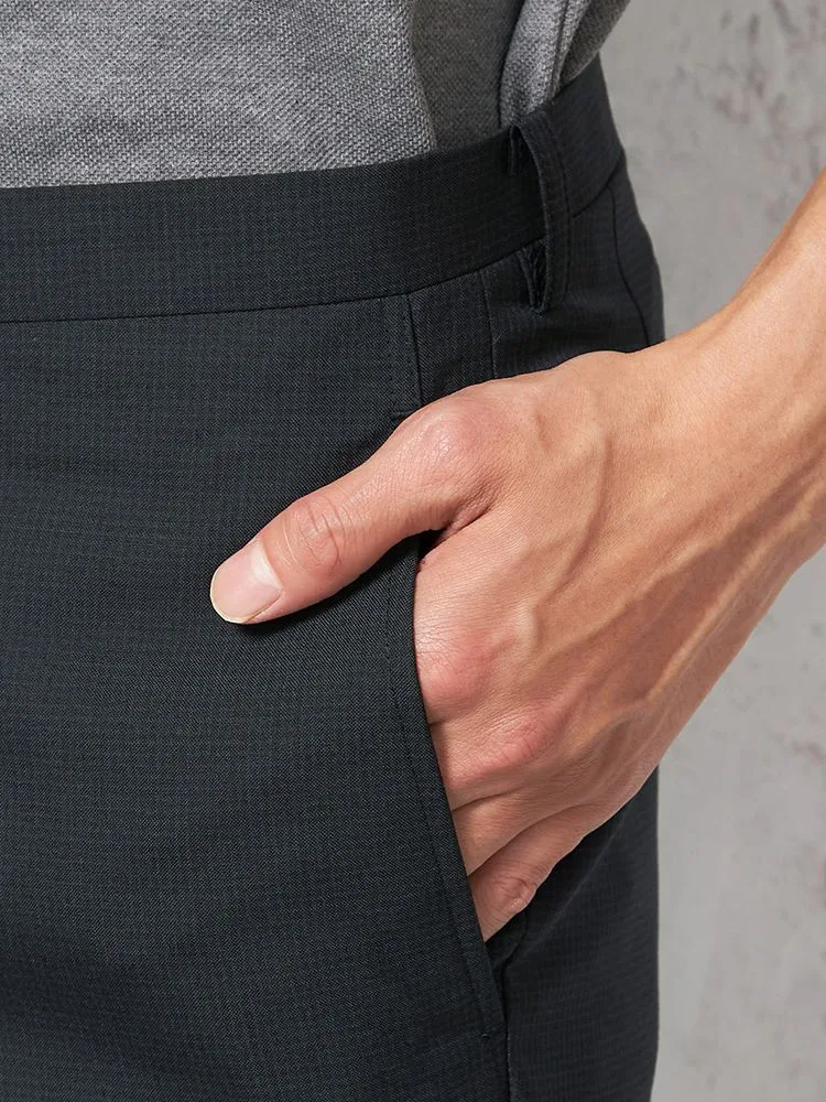 【ウォッシャブル】パンツ スラックス ノータック スリム マイクロチェック nero