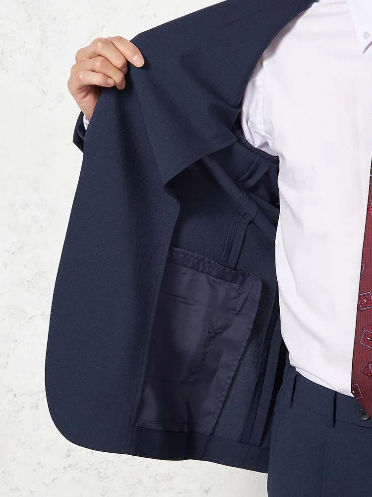 【パンツウォッシャブル】スーツ 段返り3つボタン リネンライク ライトフィール ドライタッチ 軽量 ネービー リッケンバッカー 春夏