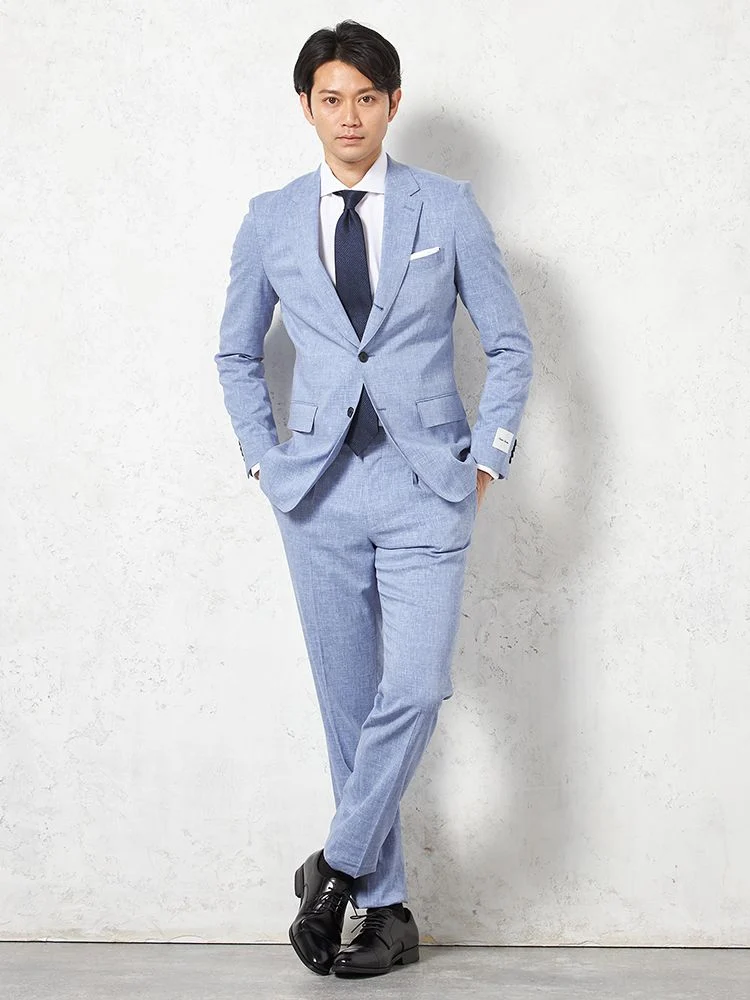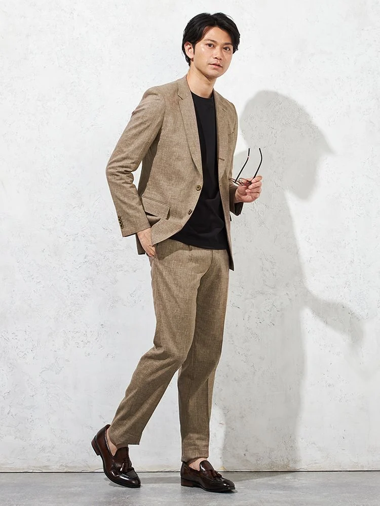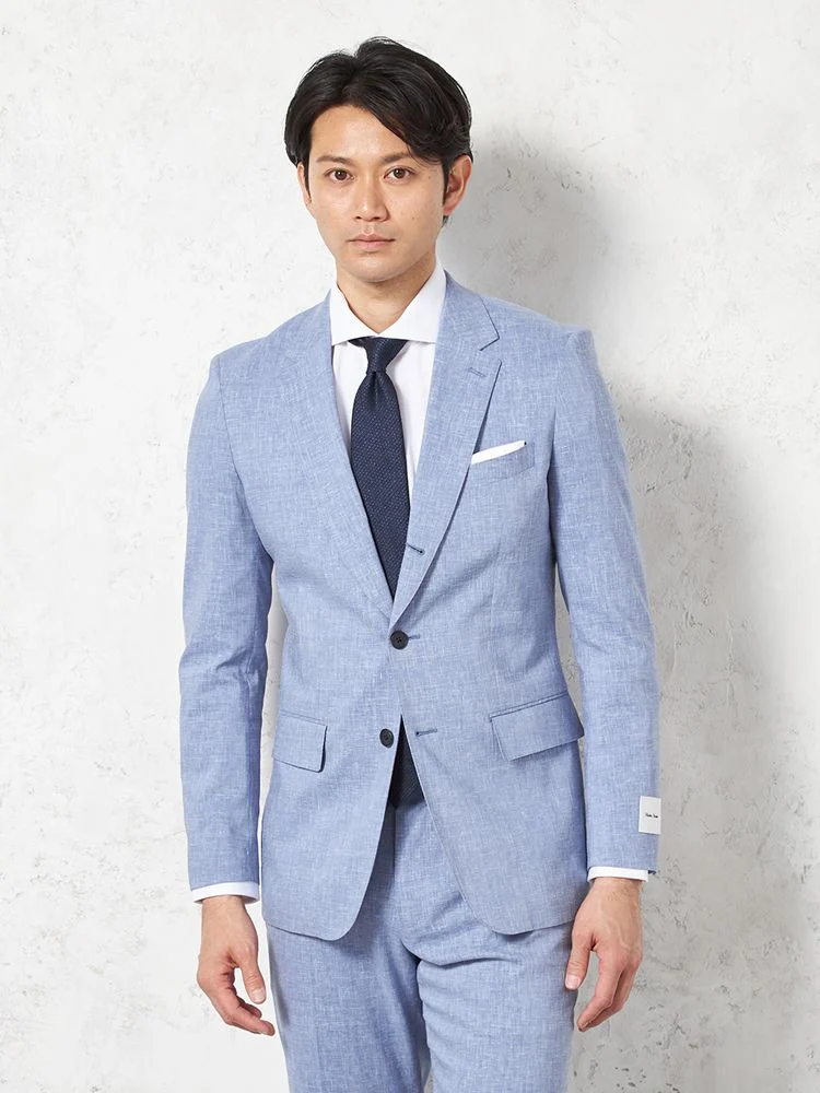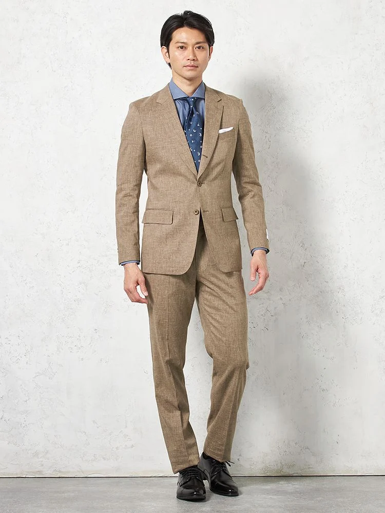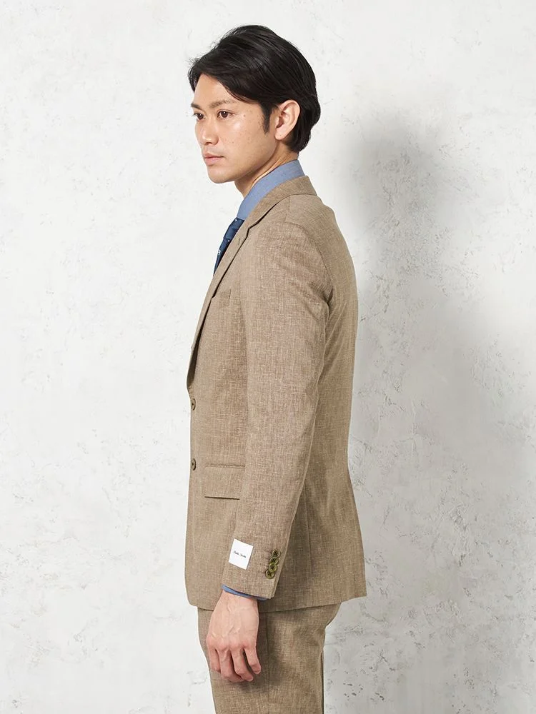 尾州産リネン混ストレッチ素材を使用した、ライトフィール仕立てのスーツです。