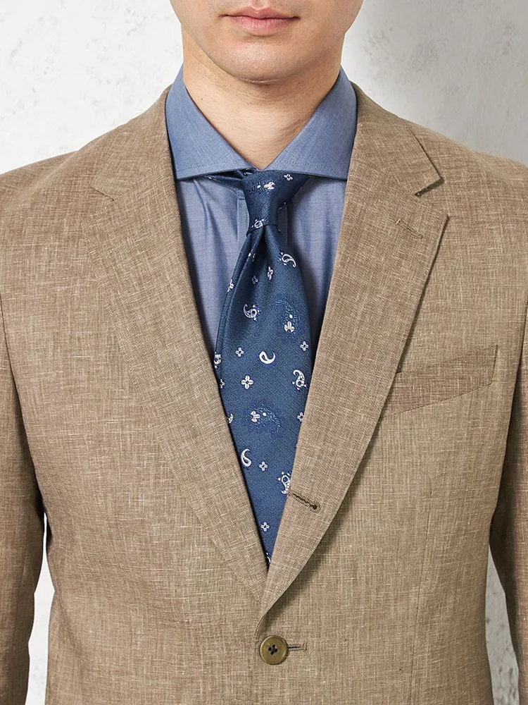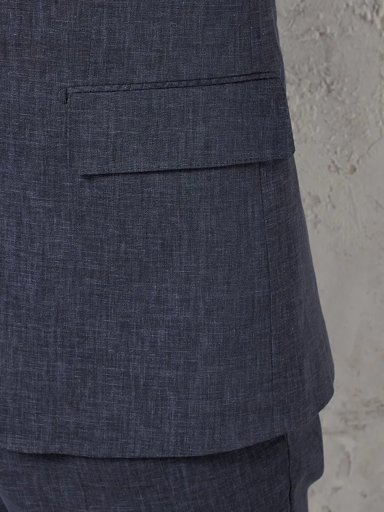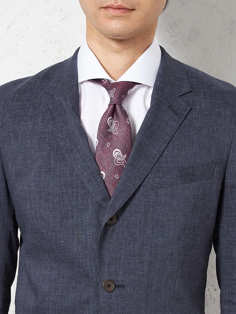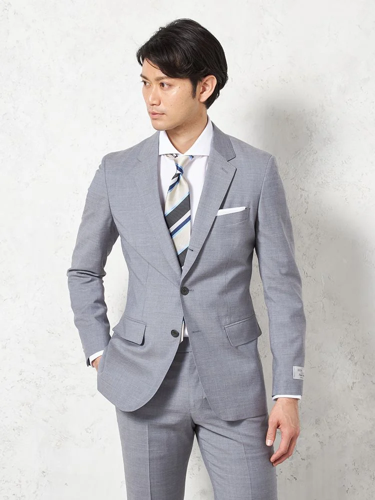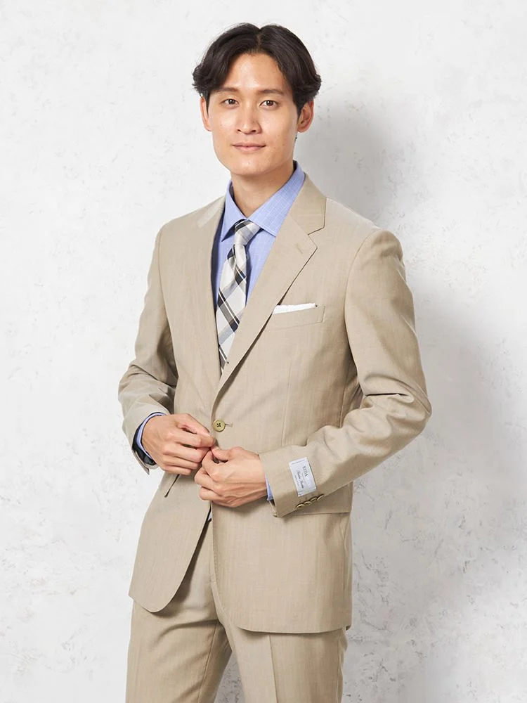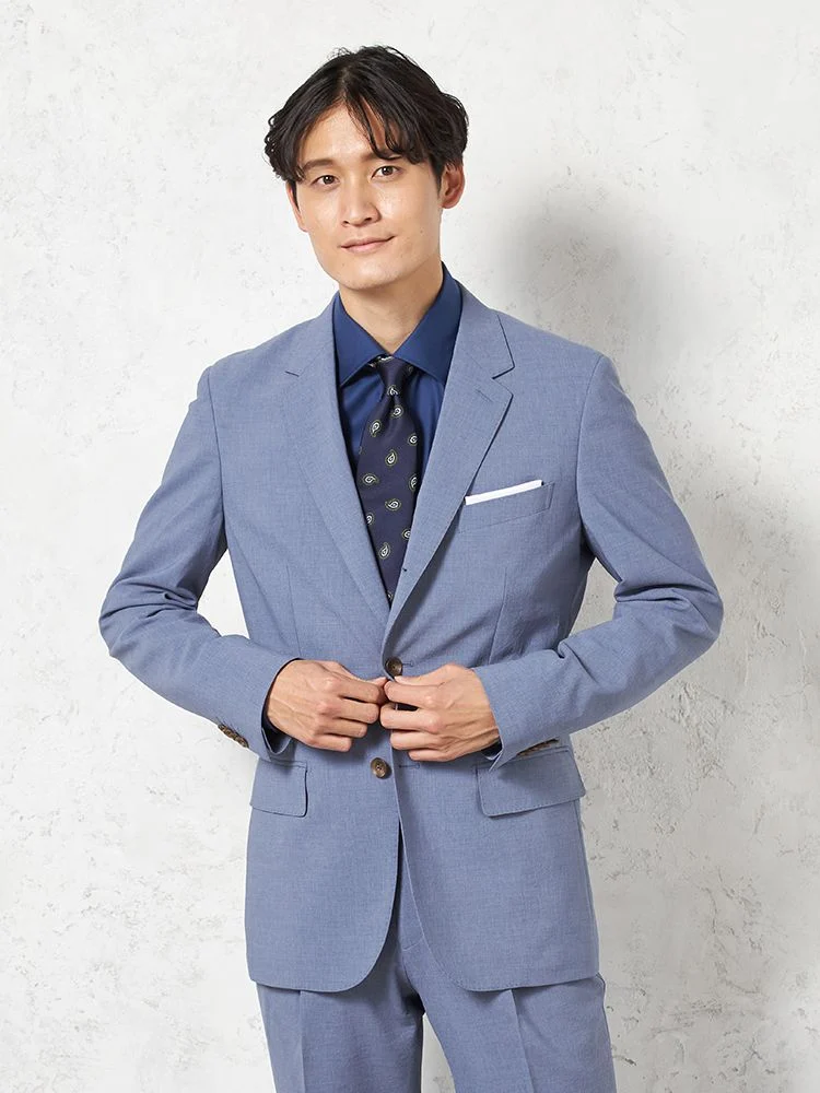 尾州産リネン混ストレッチ素材を使用した、ライトフィール仕立てのスーツです。