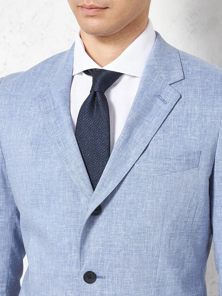 【パンツウォッシャブル】スーツ段返り3つボタンリネンライクライトフィールドライタッチ軽量ブルーリッケンバッカー春夏