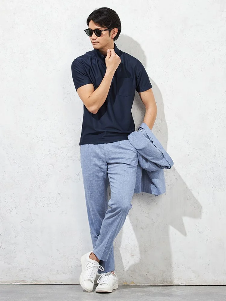 やや幅広のラペルや3つボタン仕様で、クラシックテイスト薫る一着。