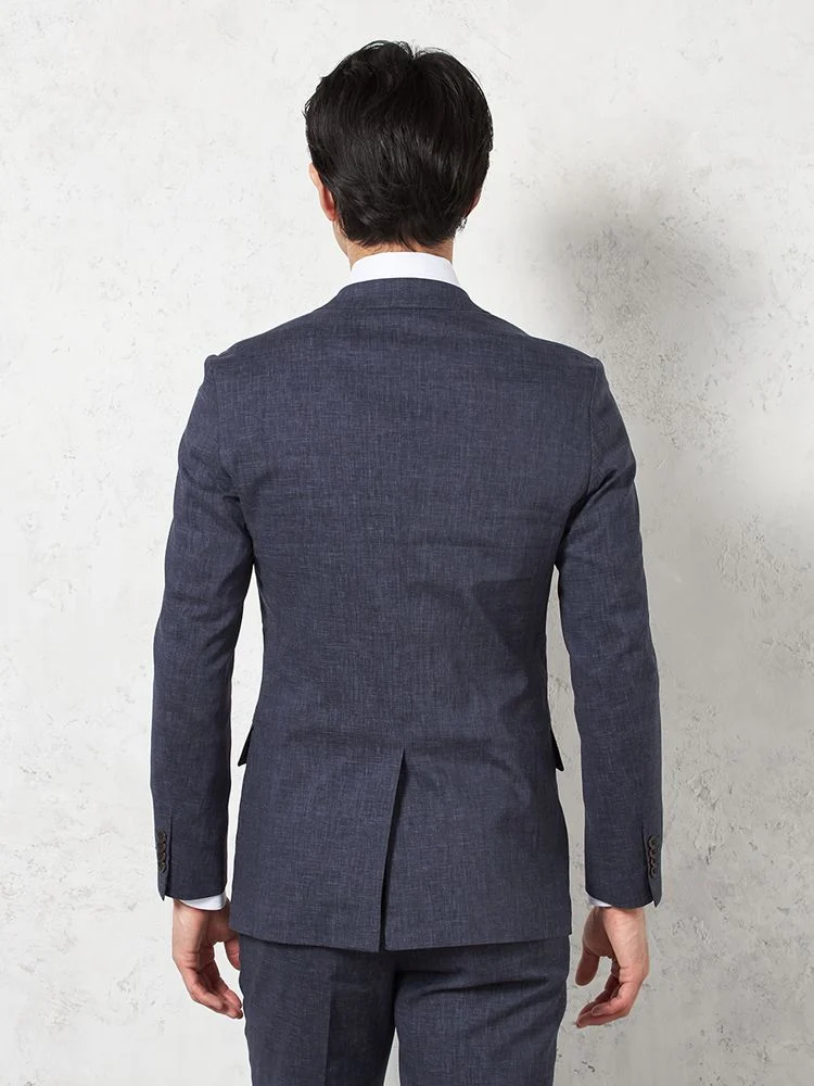 【パンツウォッシャブル】スーツ段返り3つボタンリネンライクライトフィールドライタッチ軽量ネービーリッケンバッカー春夏