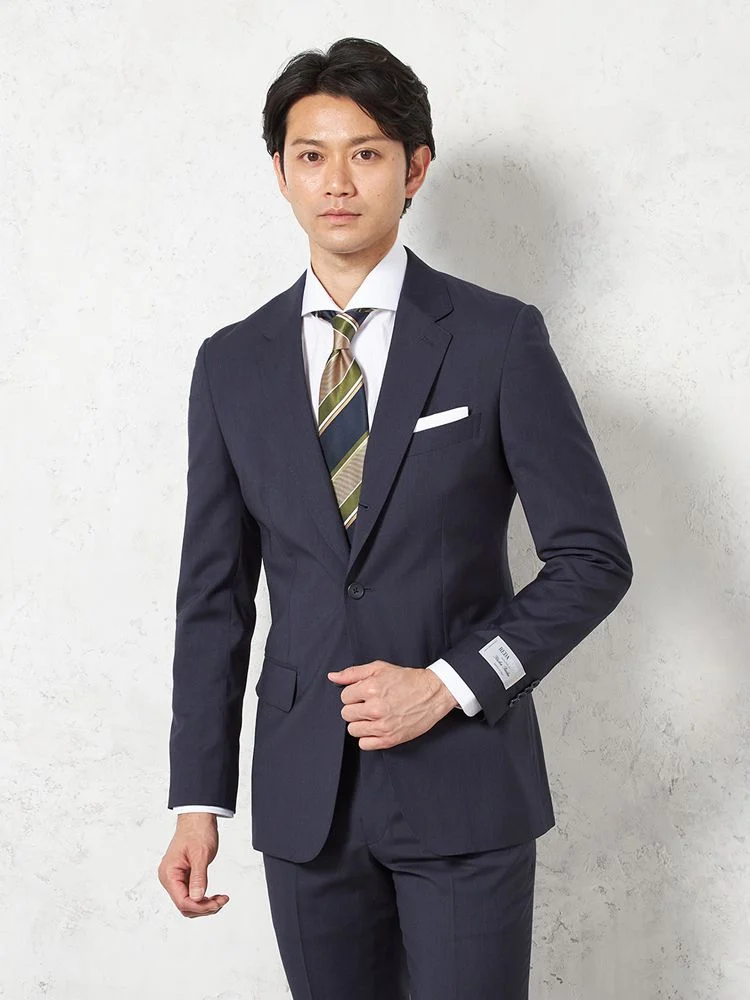 【上下ウォッシャブル】スリーピーススーツ2つボタン脚長スリムネイビーシャドウストライプNERO通年