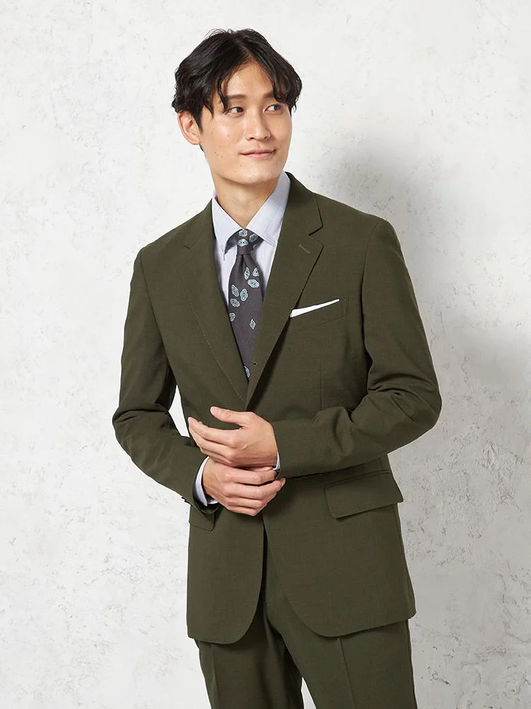 【上下ウォッシャブル】スーツ段返り3つボタンリネンライクライトフィールドライタッチ軽量カーキリッケンバッカー春夏