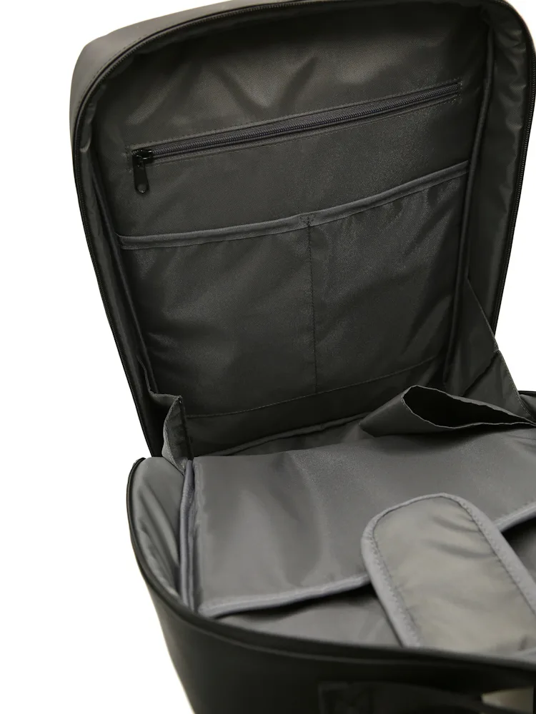 バッグ内部の背面側には、PC収納用のクッション入りポケットを搭載。