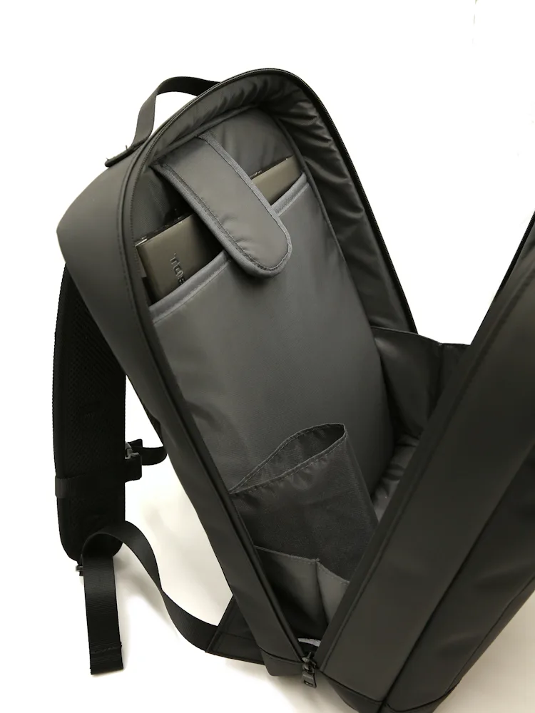 軽量で撥水性の高いTPUコーティング生地を使用した、全天候対応のリュックです。