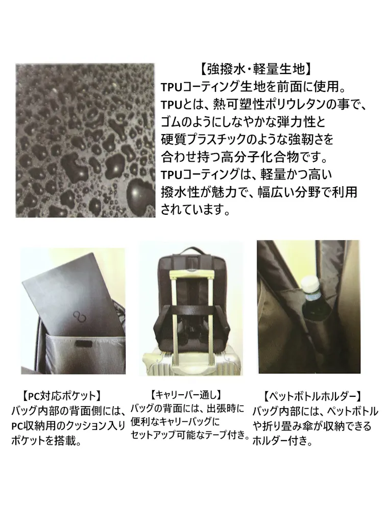 【撥水加工】ビジネスバッグ リュック 全天候対応 無地 ブラック 通年