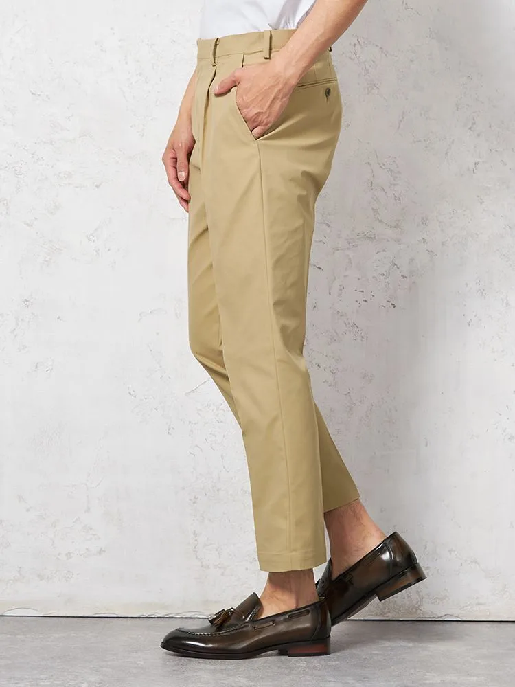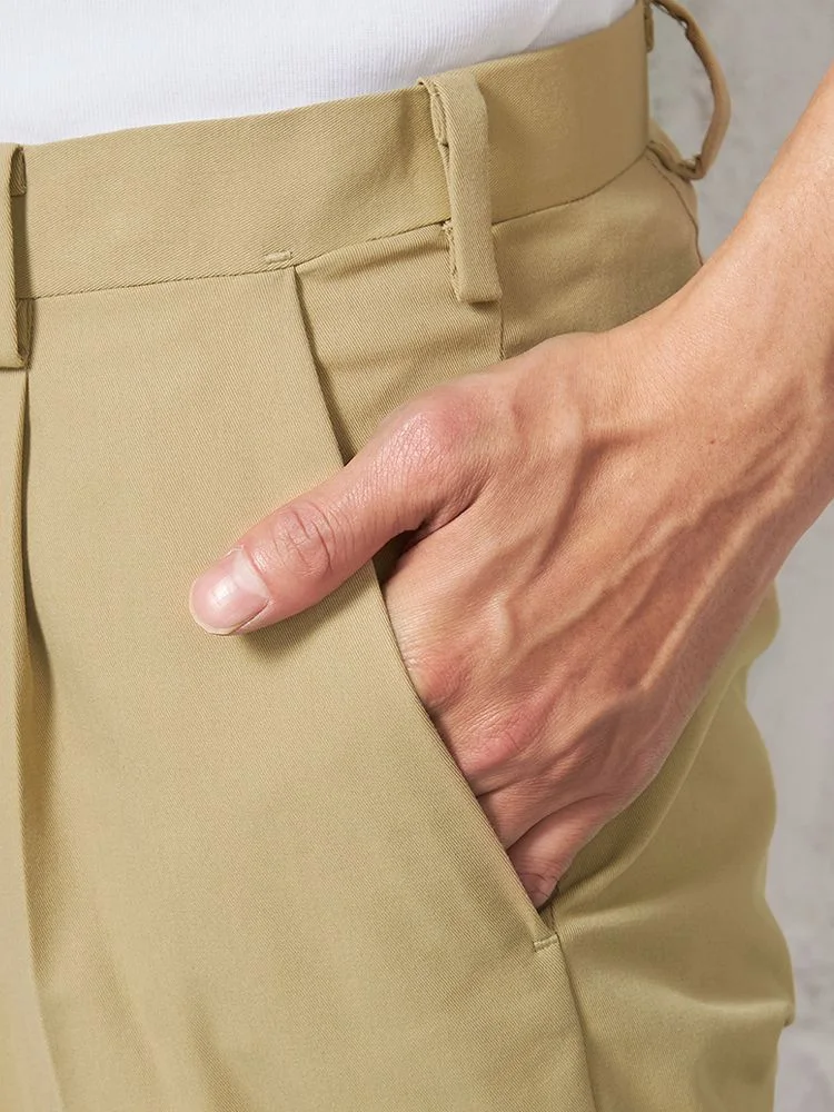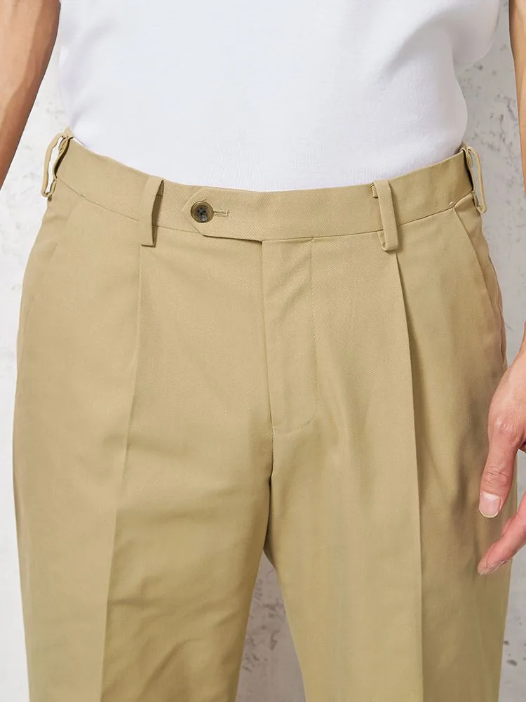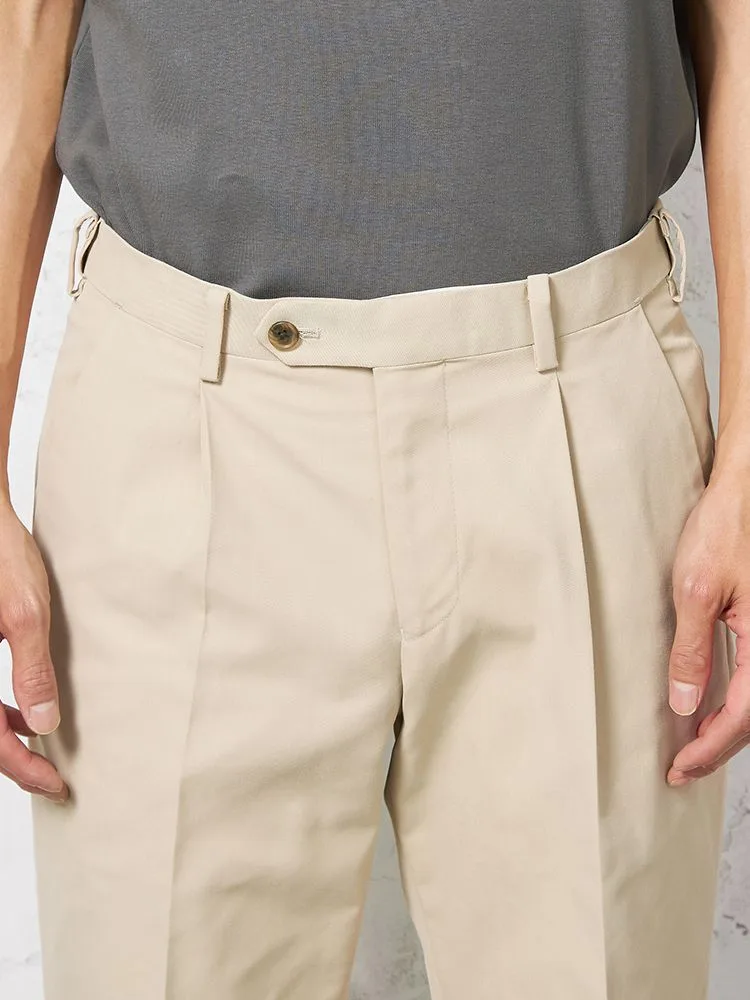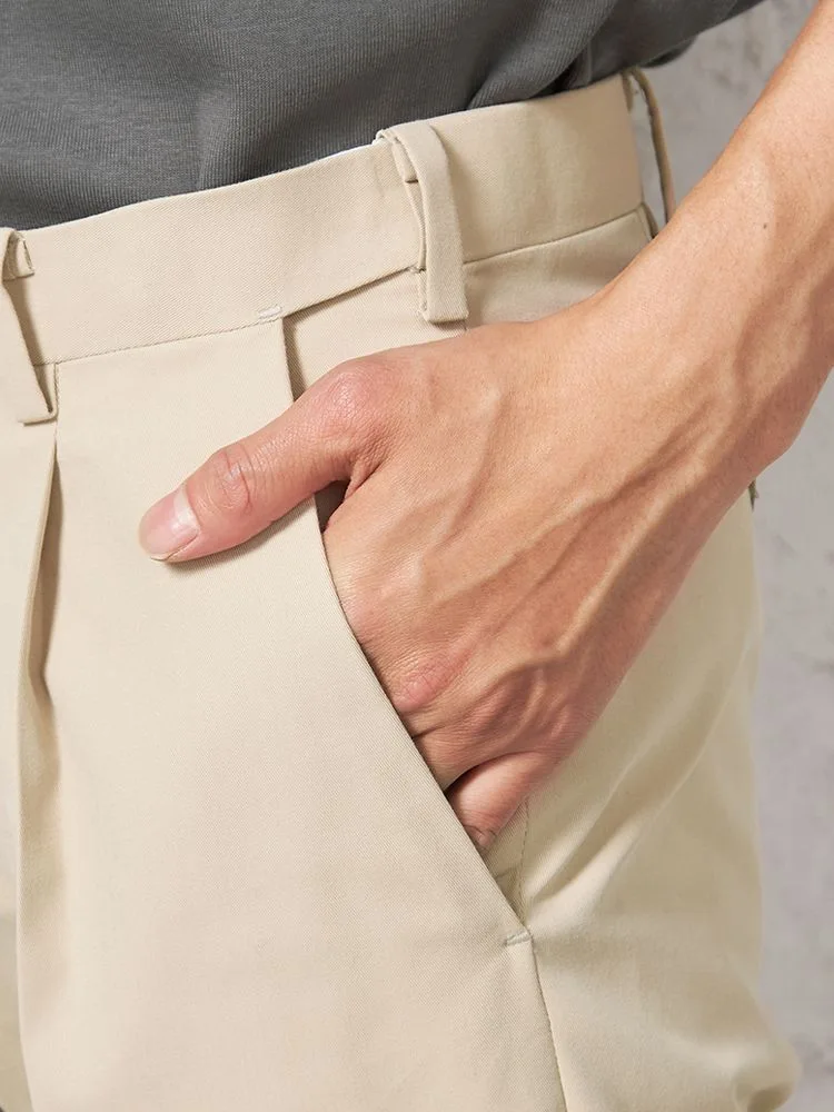 【サスビズxRENU】パンツ チノパン ワンタック 軽量 防シワ(ハンドアイロン) ウエスト伸縮 無地 春夏(ベージュ)