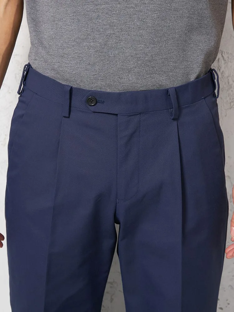 ウエストにタックを施した、程よくゆとりのあるテーパードパンツです。