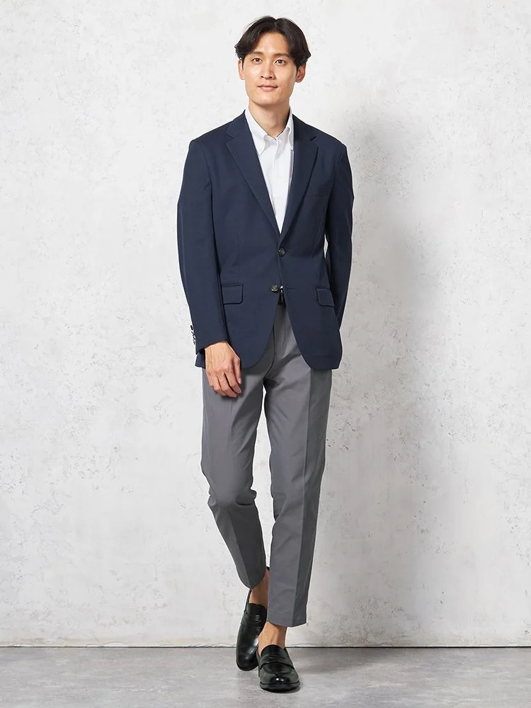スラックスを合わせたジャケパンコーデからデニムを合わせた大人カジュアルまで幅広く着こなせるアイテムです。