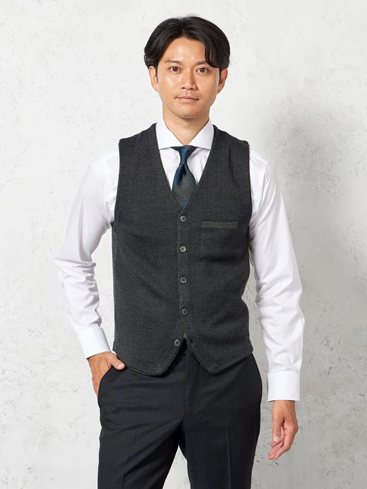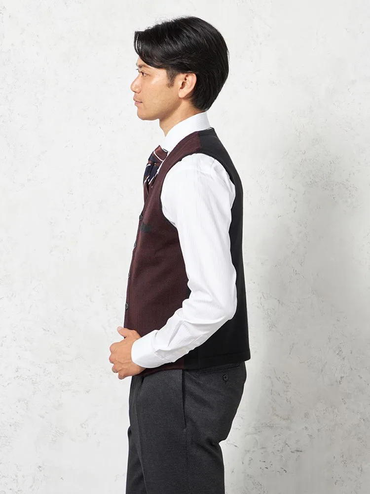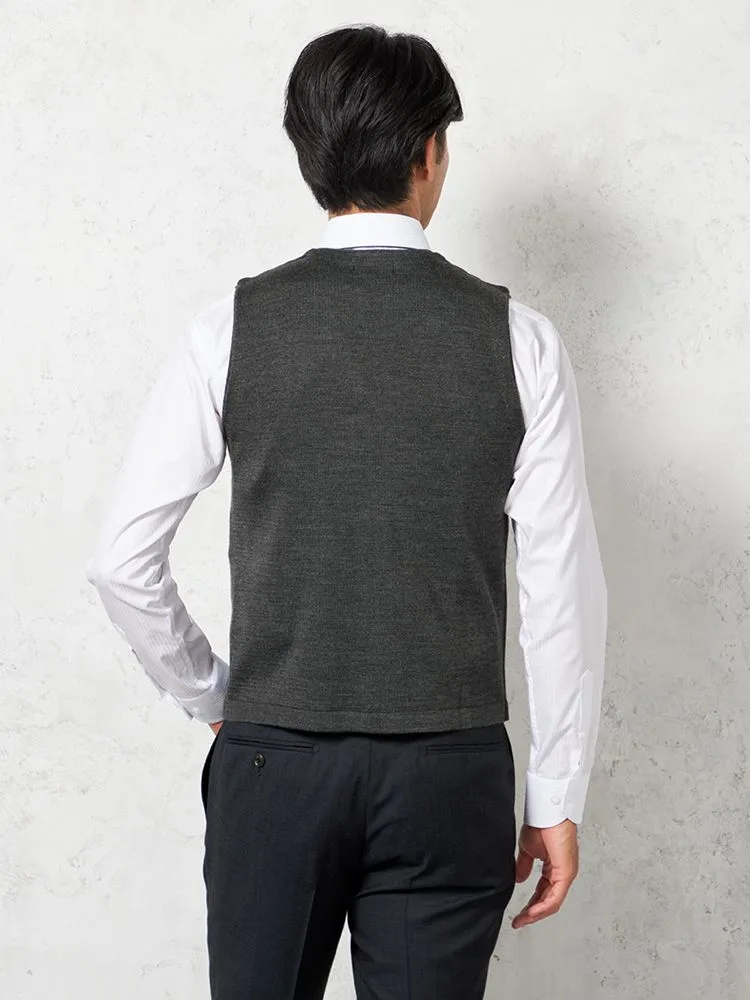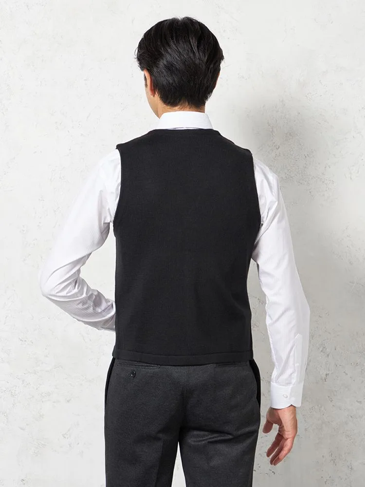 【ウォッシャブル】ミラノリブ前割れベスト放電抗ピリング無地ベストリッケンバッカー秋冬