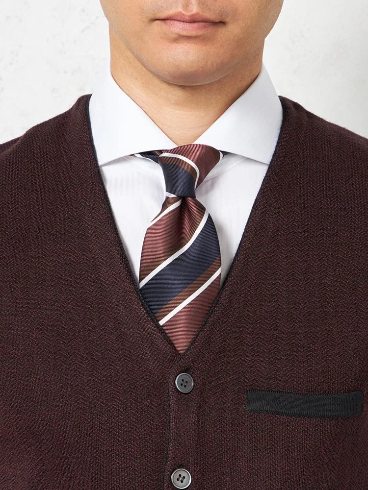 【ウォッシャブル】ヘリンボーン柄 ニットジレ 放電 抗ピリング ヘリンボン ベスト リッケンバッカー 秋冬(ネイビー)