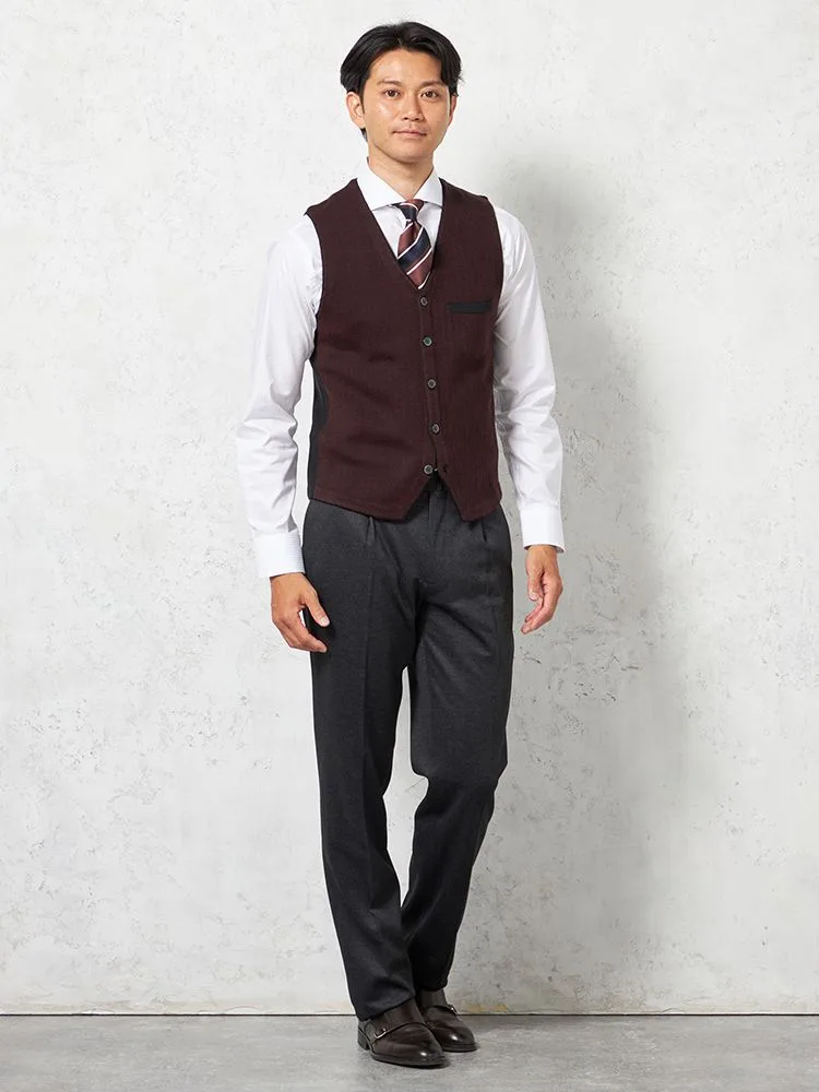 トラディショナルな印象のヘリンボーン柄が、深みの増す秋冬の装いにもぴったりのアイテムです。