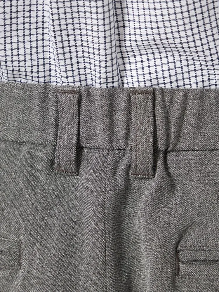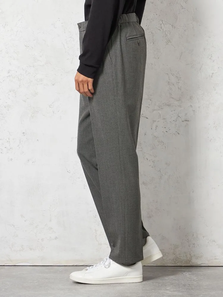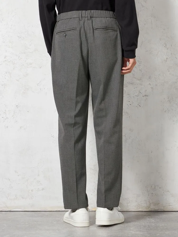 腰まわりにゆとりを持たせたテーパードパンツ。