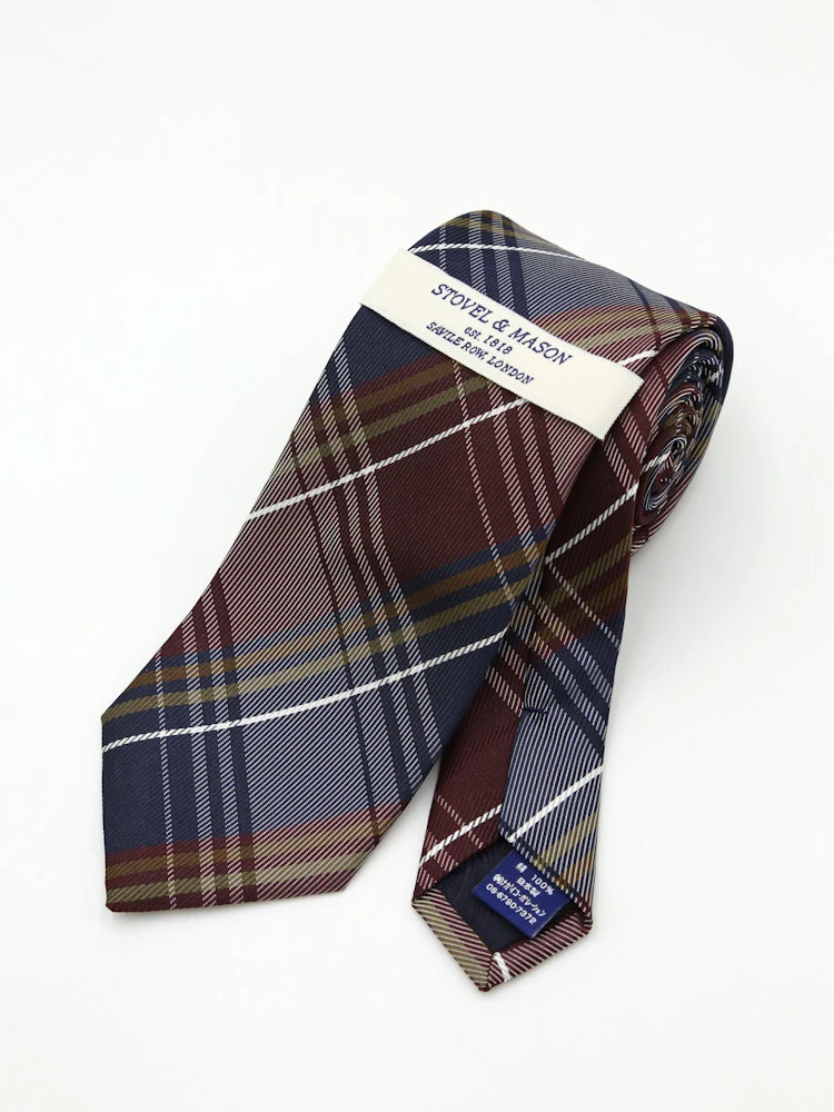 【シルク100%】ネクタイ 日本製生地 チェック STOVEL&MASON 秋冬(ワイン)