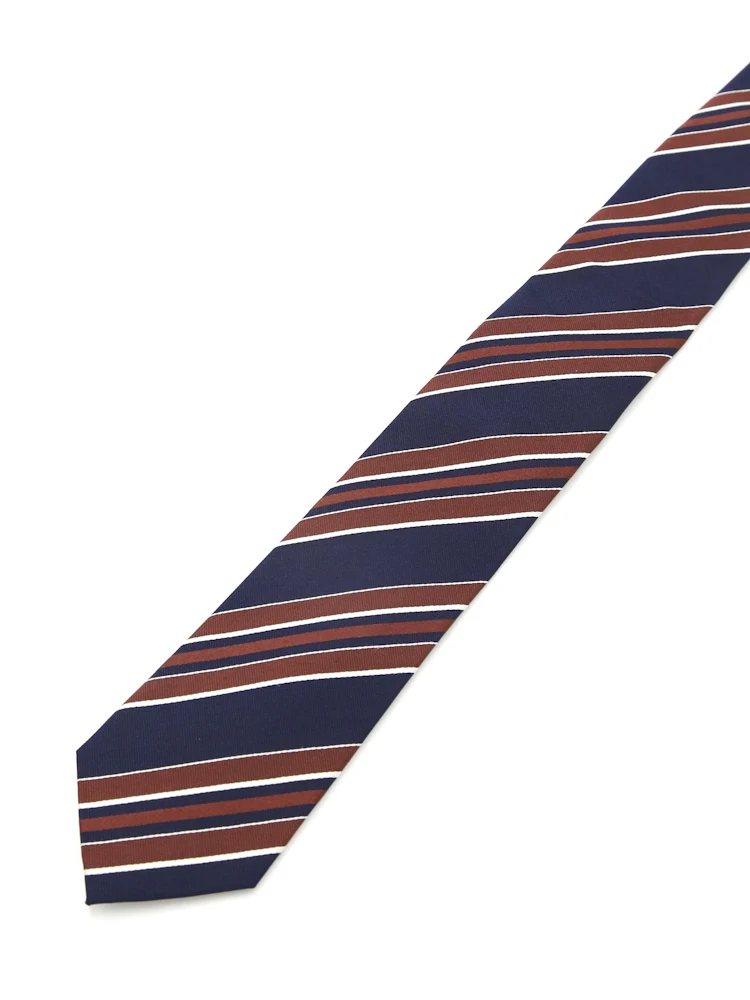 中間色のミディアムカラーで構成したクラシックな雰囲気のネクタイです。
