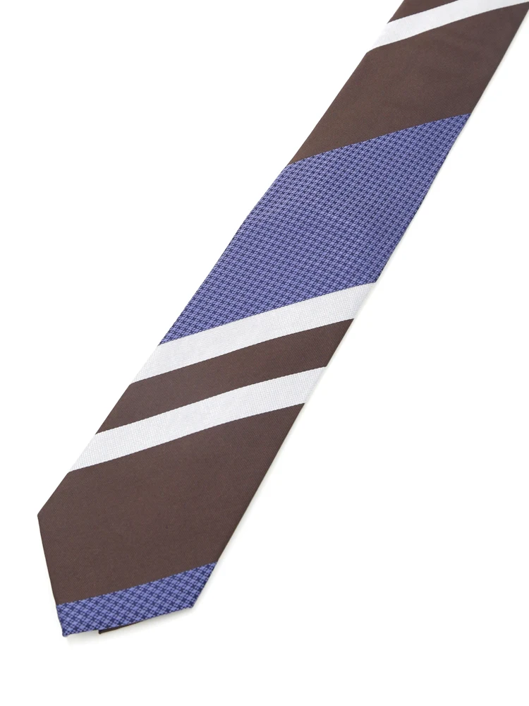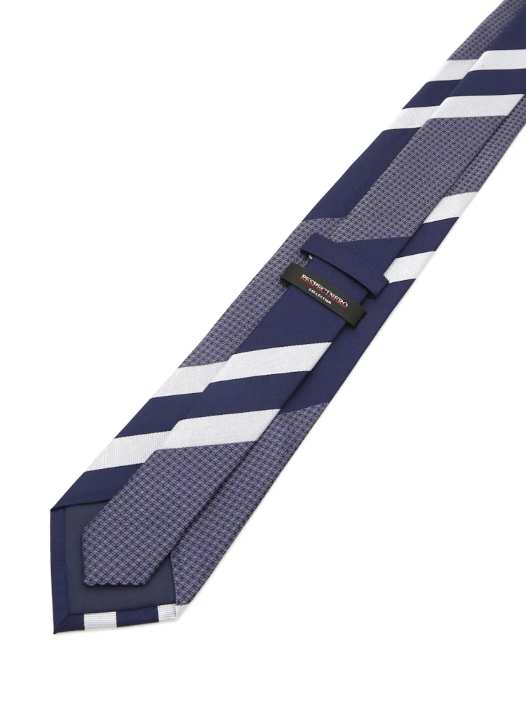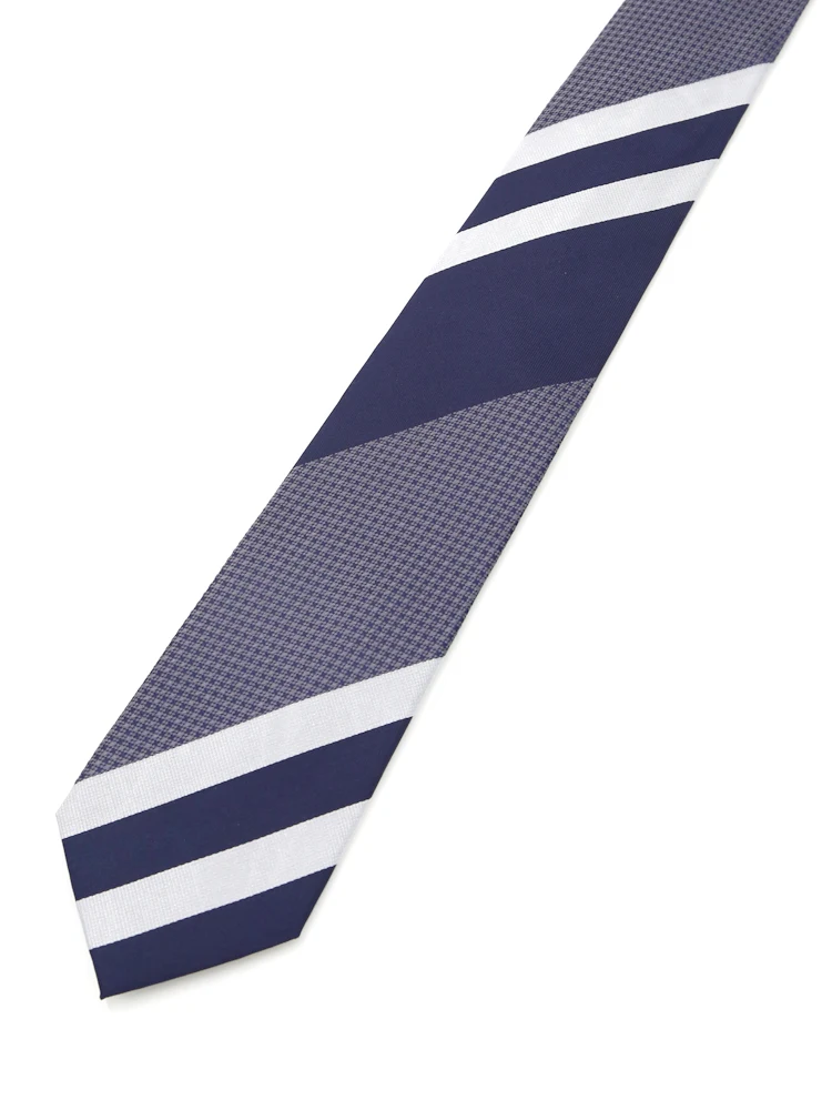 モードなテイストを含みつつもどこかクラシックな雰囲気をもったネクタイです。
