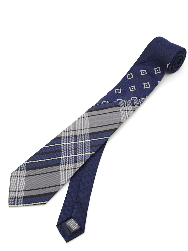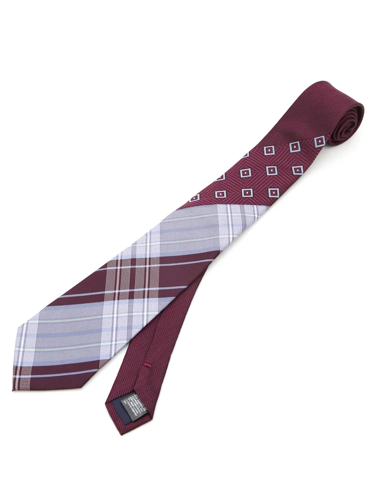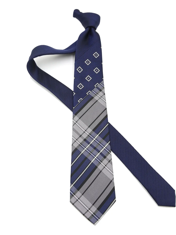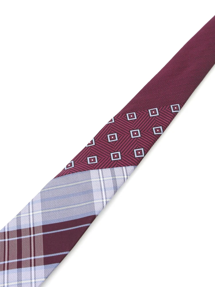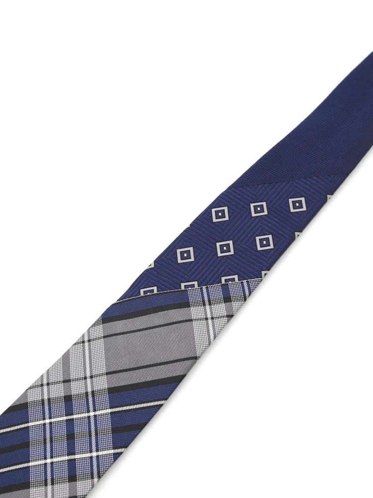 三種のシルク生地を縫い合わせて一枚の生地に仕上げたクレイジーパターンネクタイです。