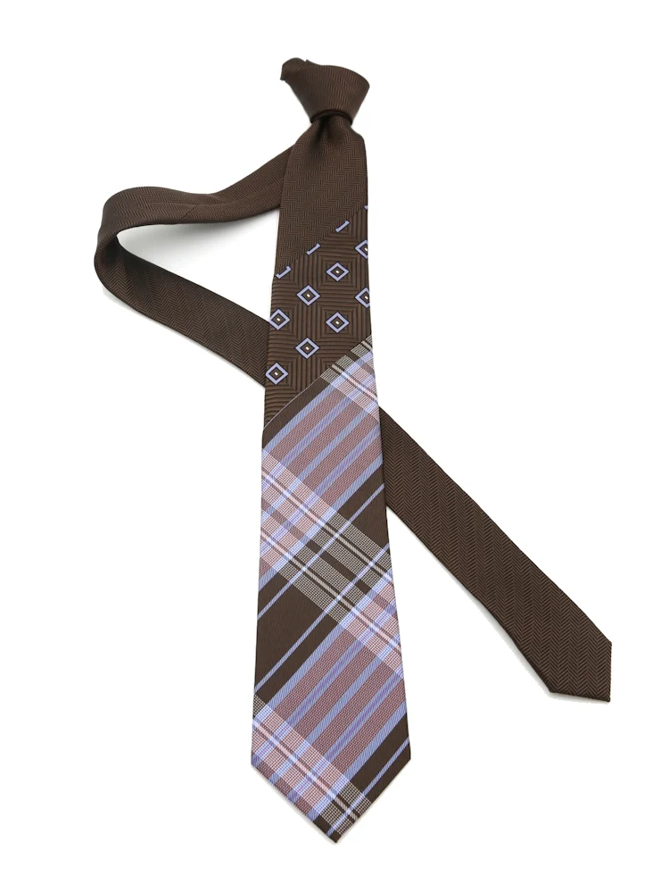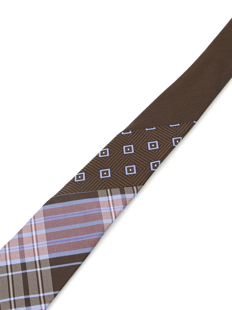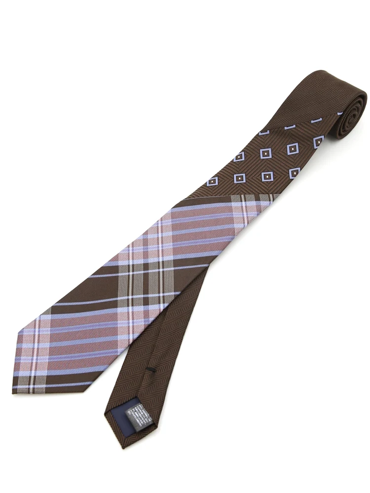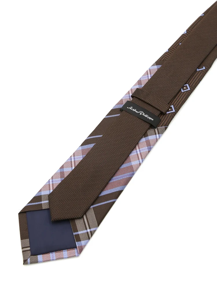 【クレイジーパターン】ネクタイ シルク100% パッチワーク柄(無地/小紋/チェック) ARTHUR PHILLIPPE-アーサーフィリップ- 秋冬(ブラウン)