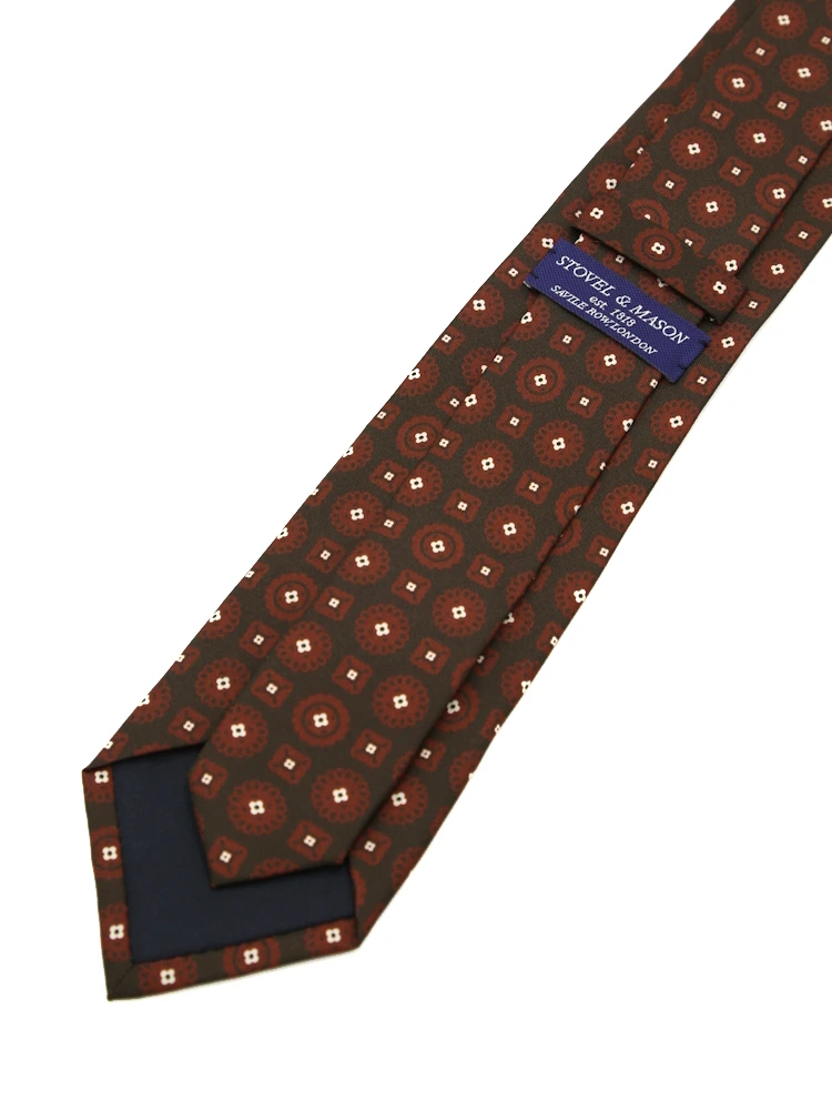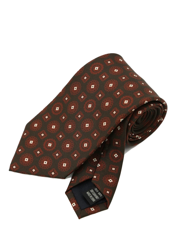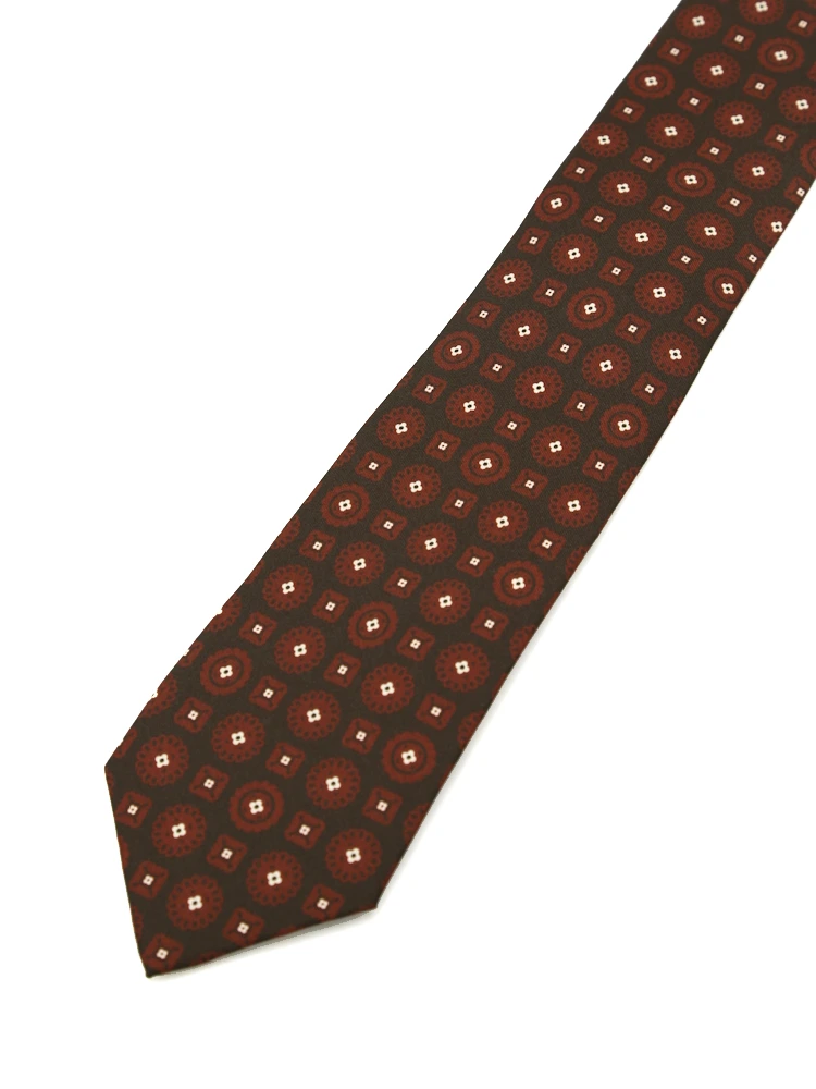 【シルク100%】ネクタイ レギュラー プリント柄 小紋 S&M BLUE LABEL 秋冬(ブラウン)