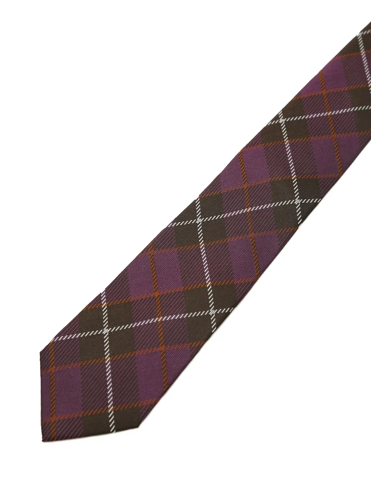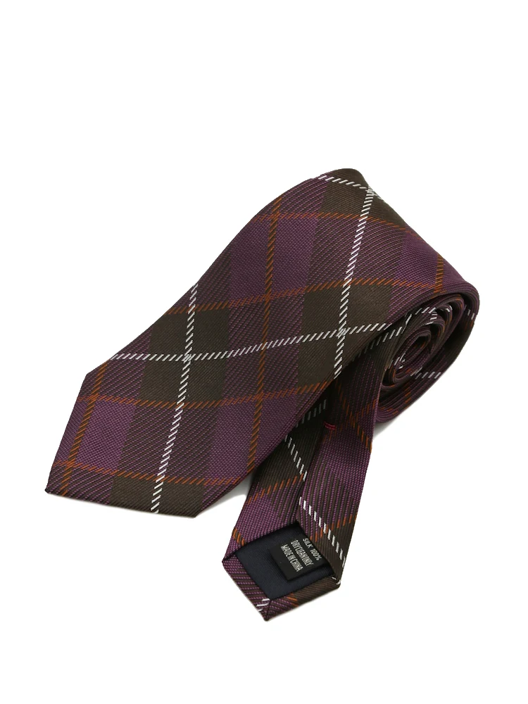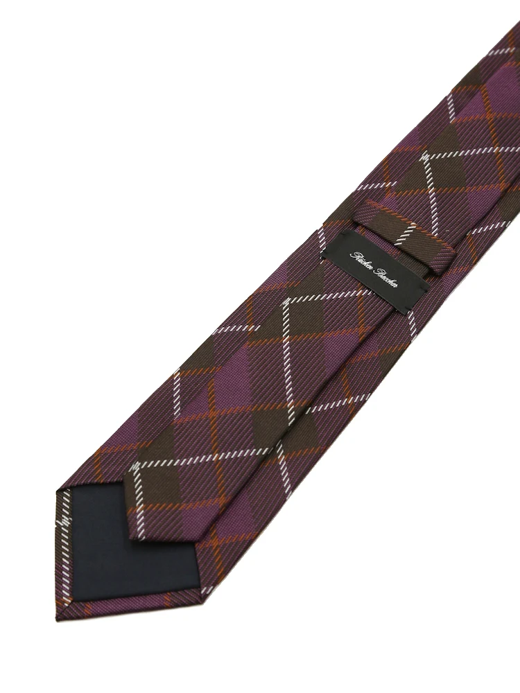 【シルク100%】ネクタイ レギュラー メランジ調 チェック リッケンバッカー 秋冬(ワイン)