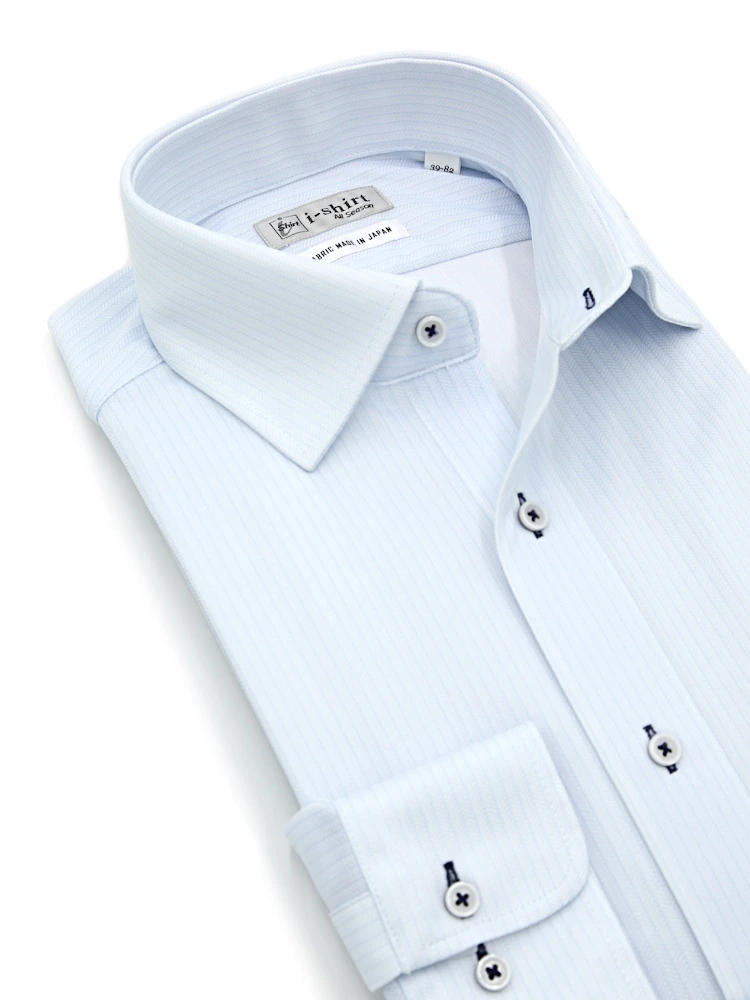 【即納】WEB限定【完全ノーアイロン】長袖アイシャツセミワイドストレッチシャドウストライプi-shirt通年