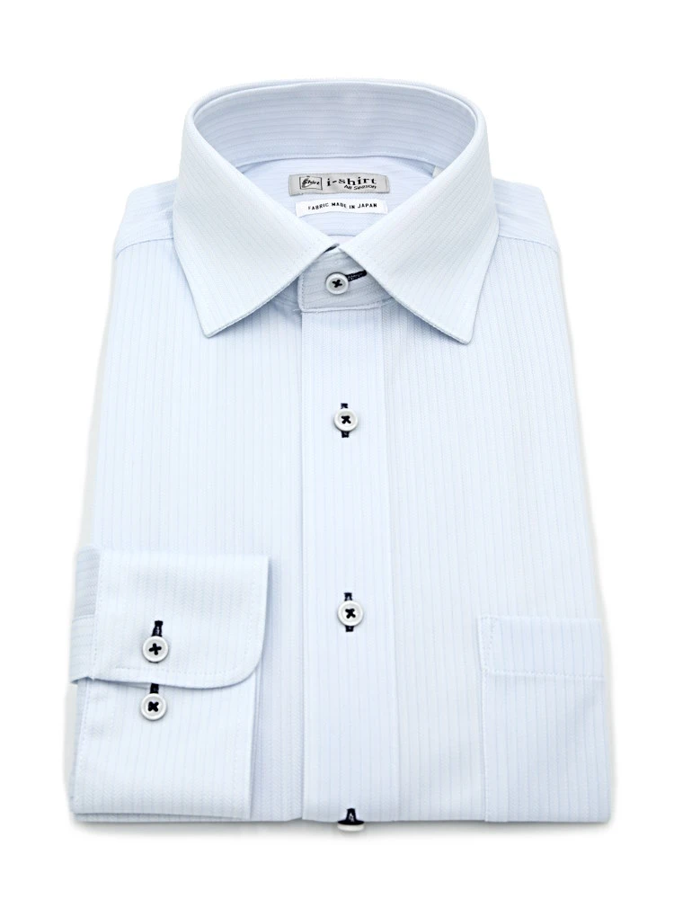 【完全ノーアイロン】長袖アイシャツセミワイドストライプワイシャツi-shirt通年