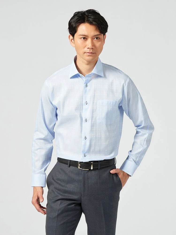【即納】WEB限定【完全ノーアイロン】長袖アイシャツセミワイドストレッチミニチェック柄i-shirt通年