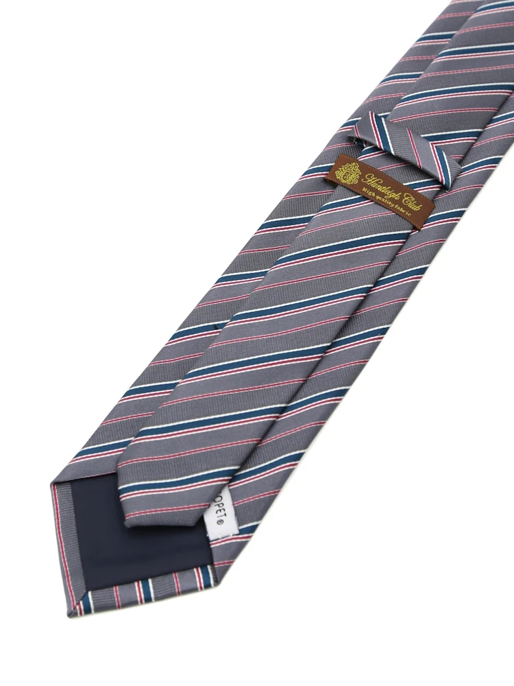 【ウォッシャブル】エコペットネクタイ レギュラー 再生繊維使用 ストライプ ハントレークラブ 通年(C.グレー)