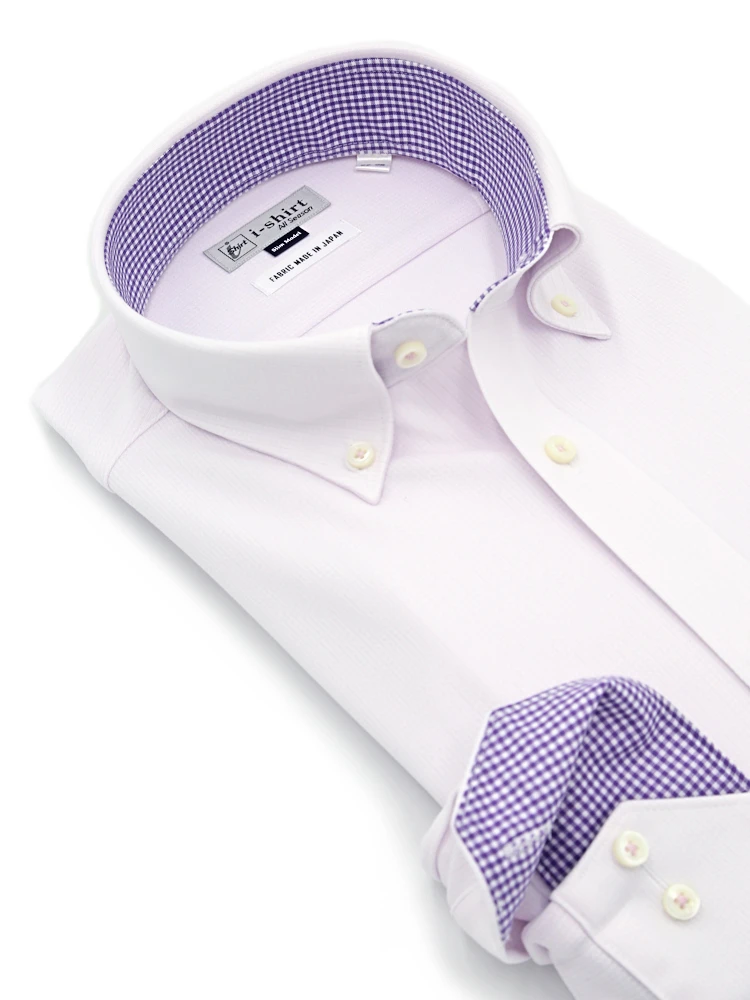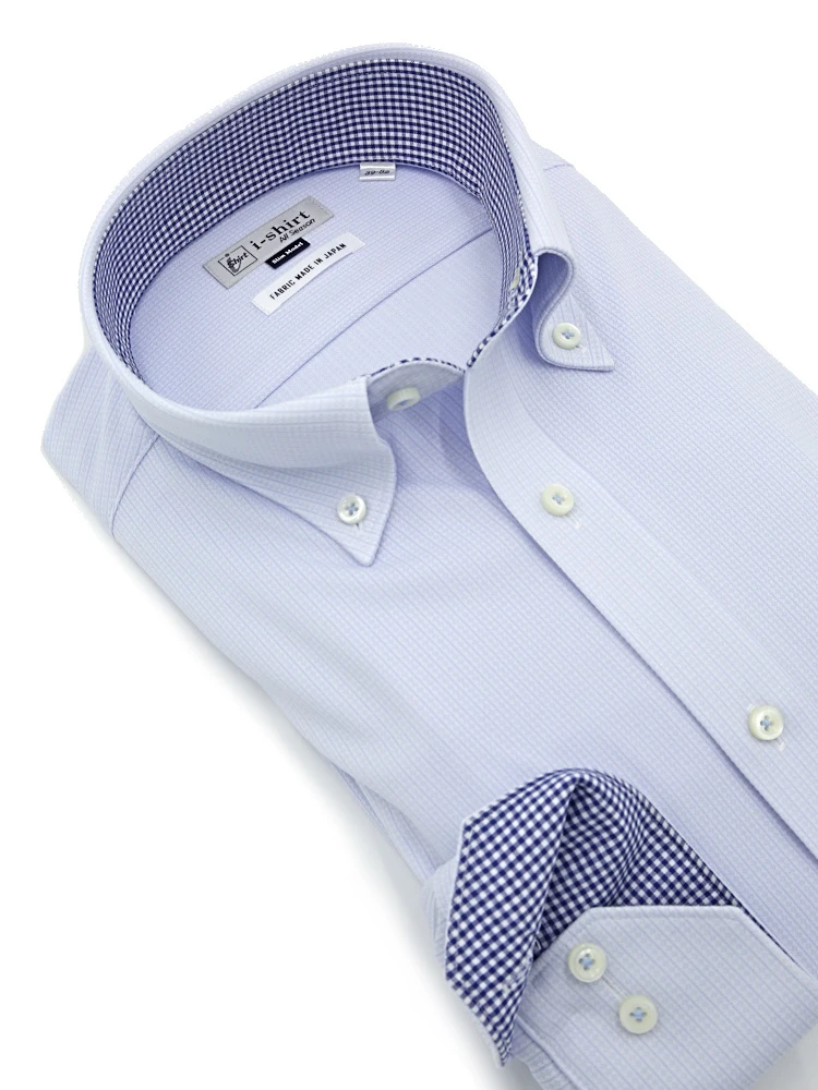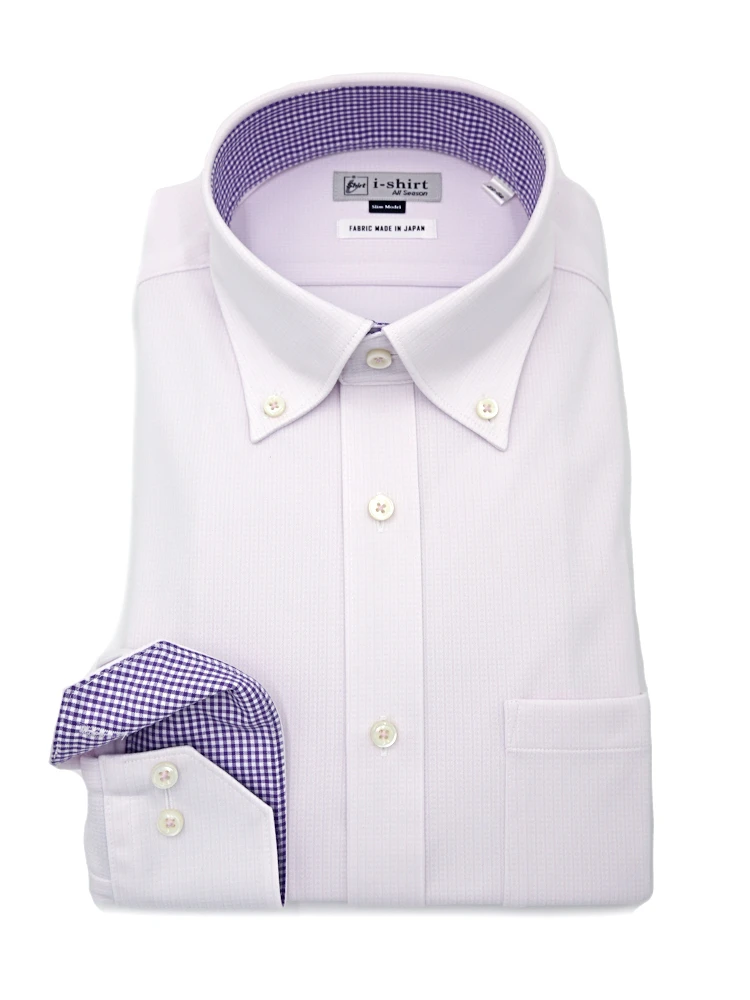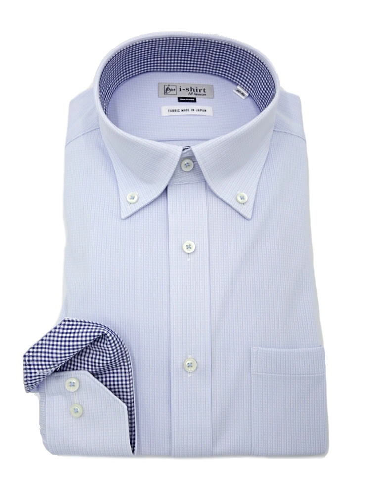 【形態安定】アイシャツ長袖ワイシャツボタンダウン織柄無地i-shirt通年