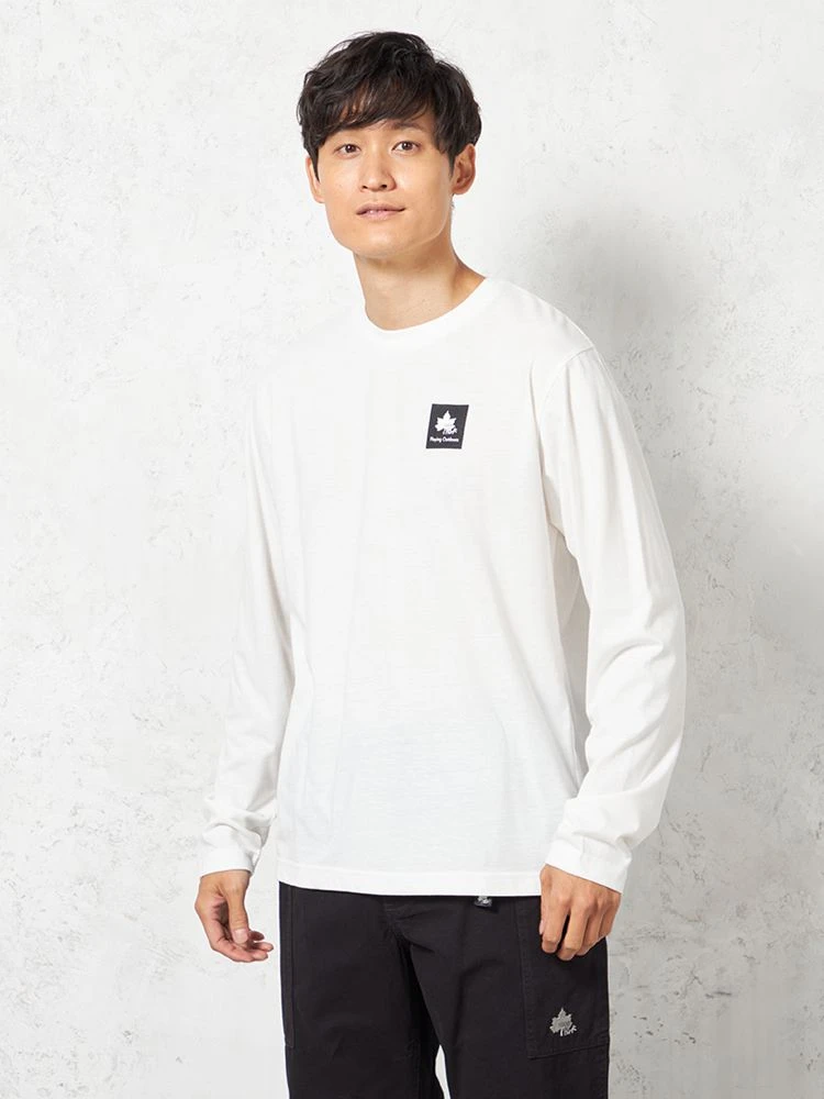 【LOGOS-ロゴス-】BOXプリント 長袖Tシャツ クルーネック 無地 カジュアルインナー 秋冬(ホワイト)