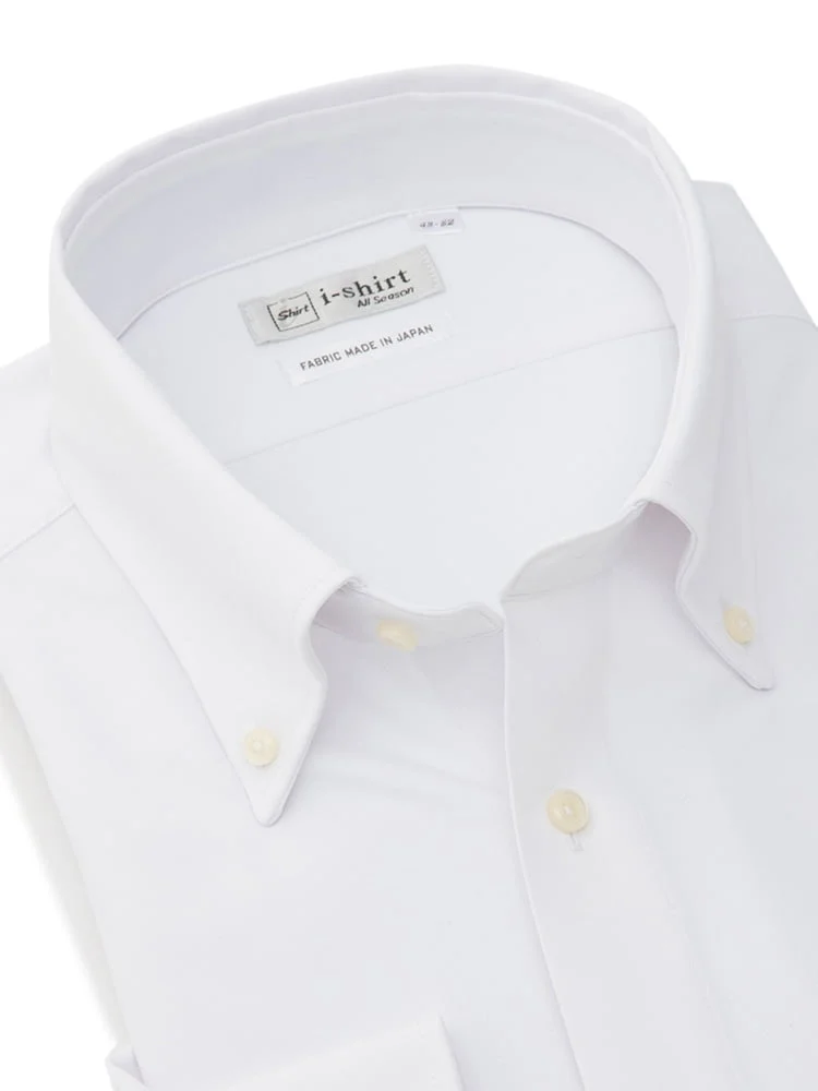 【完全ノーアイロン】長袖 アイシャツ ボタンダウン 白無地 ワイシャツ i-shirt 通年
