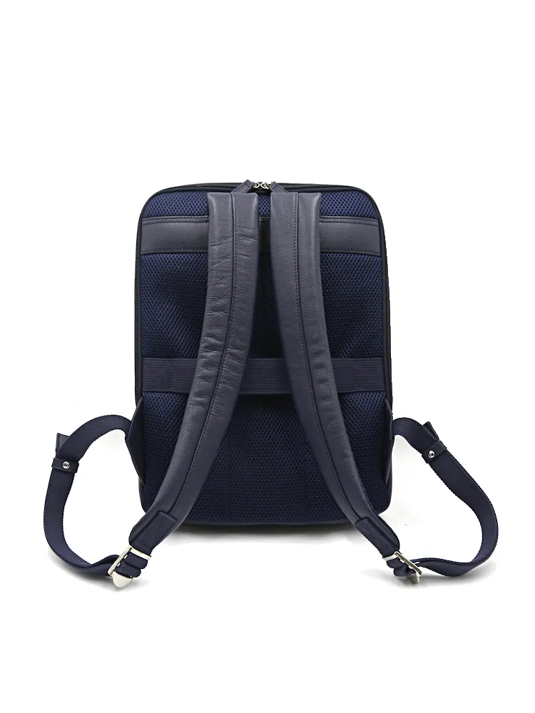 【本革使用】リュック LWG認証レザー 背面メッシュ PC収納可 通年(ネイビー)