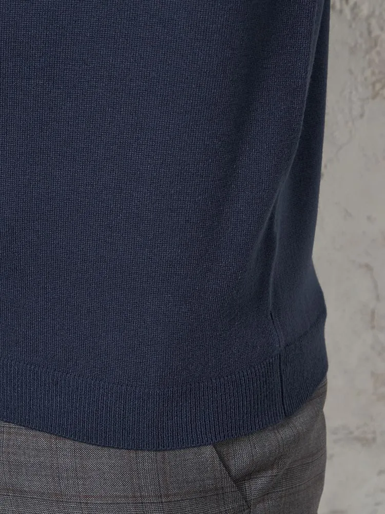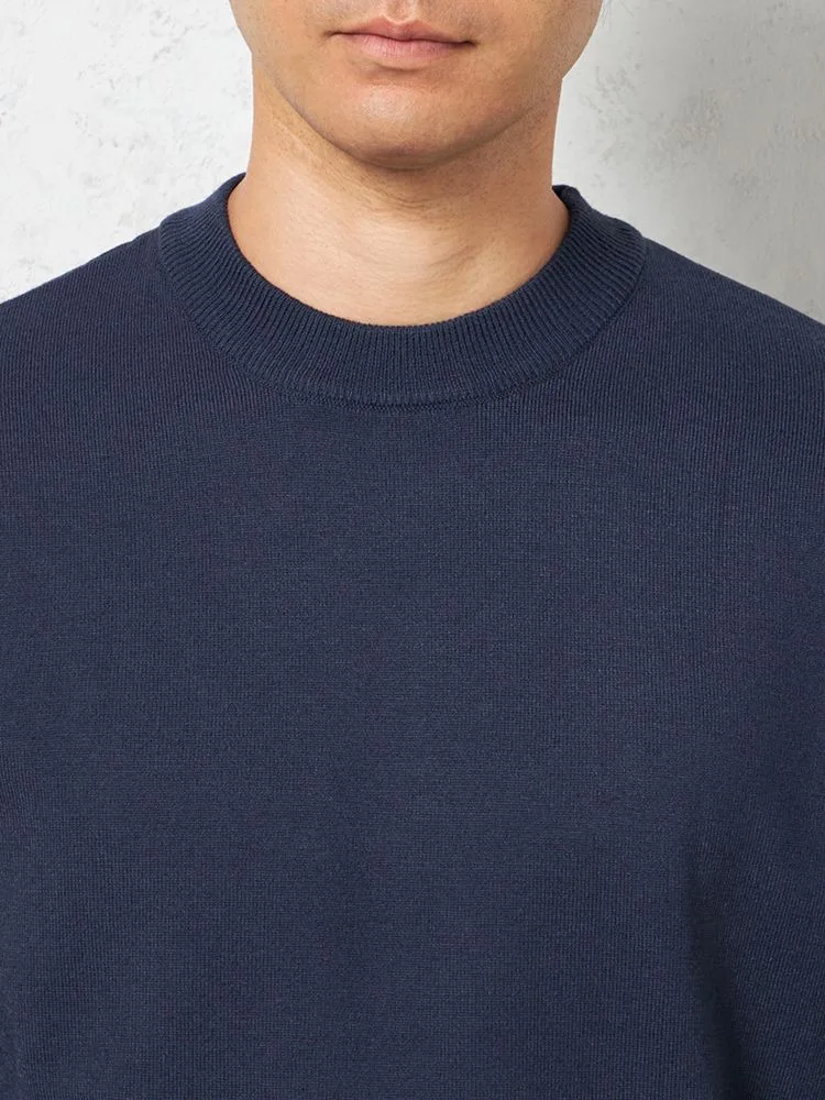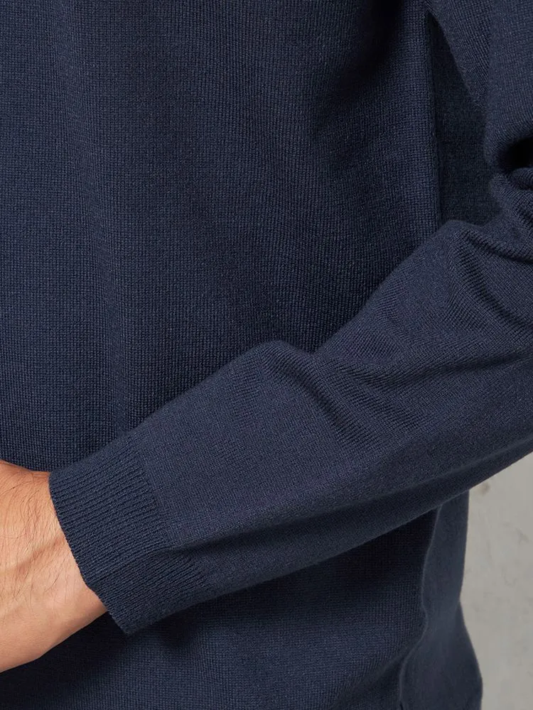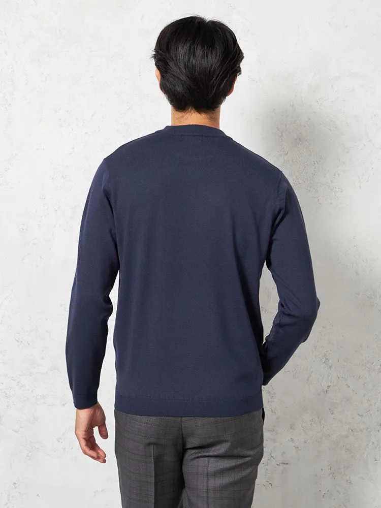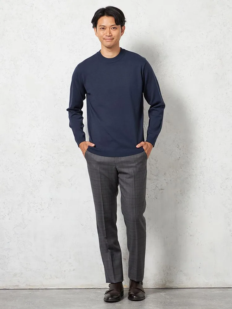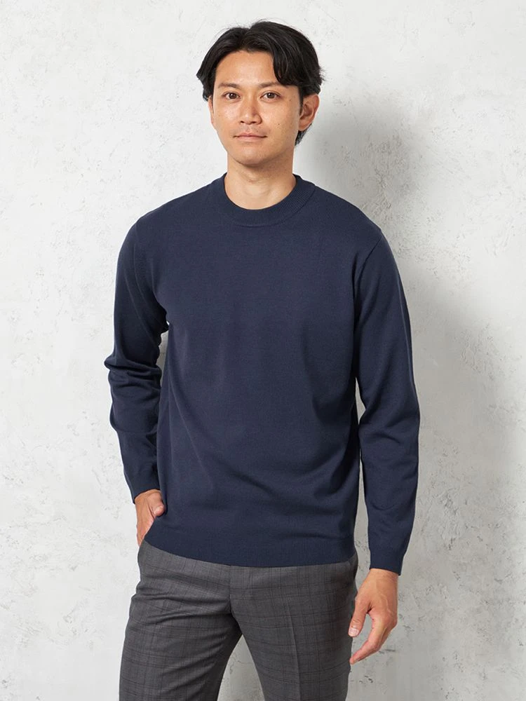 【ウォッシャブル】ソリストヒートニット モックネック 吸湿発熱 無地 リッケンバッカー 秋冬(ネイビー)